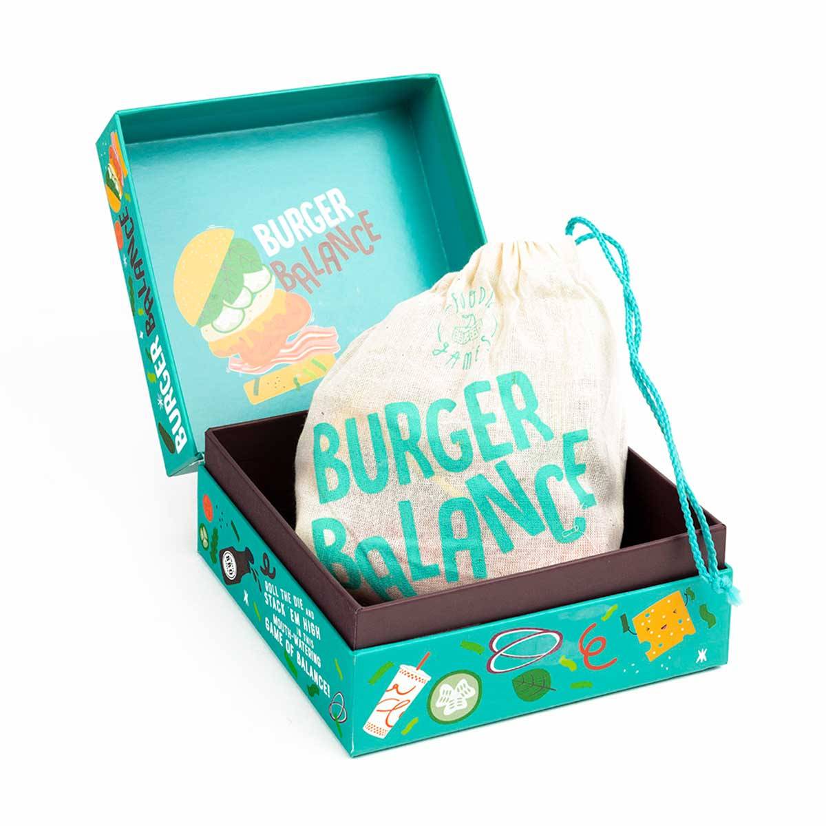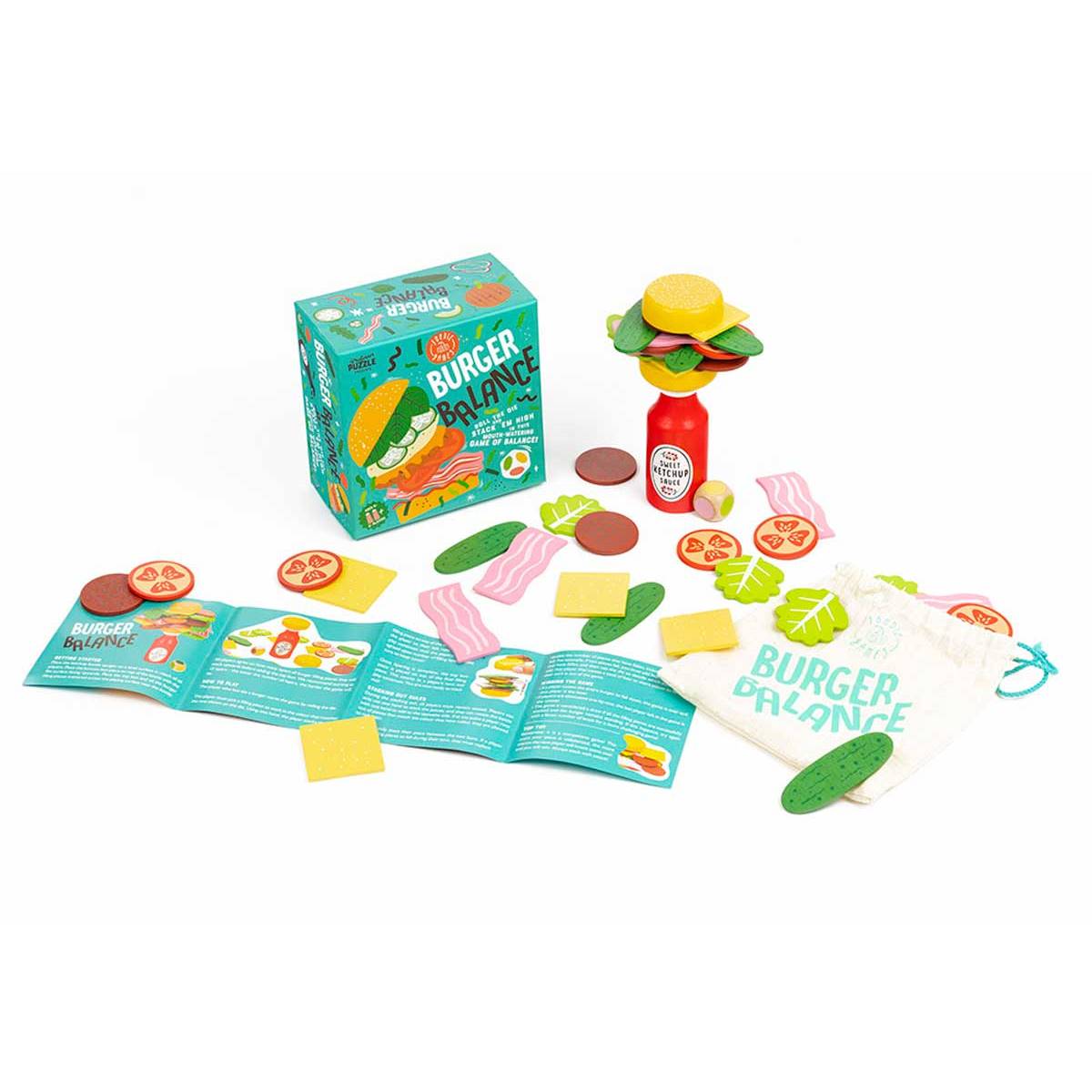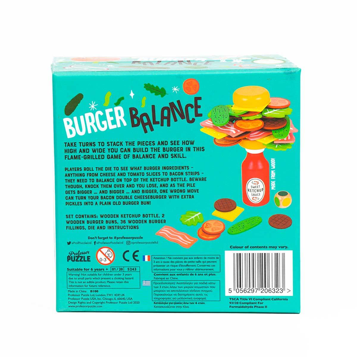 Players take turns to roll the dice and see what burger ingredients they can balance on top of the ketchup bottle.