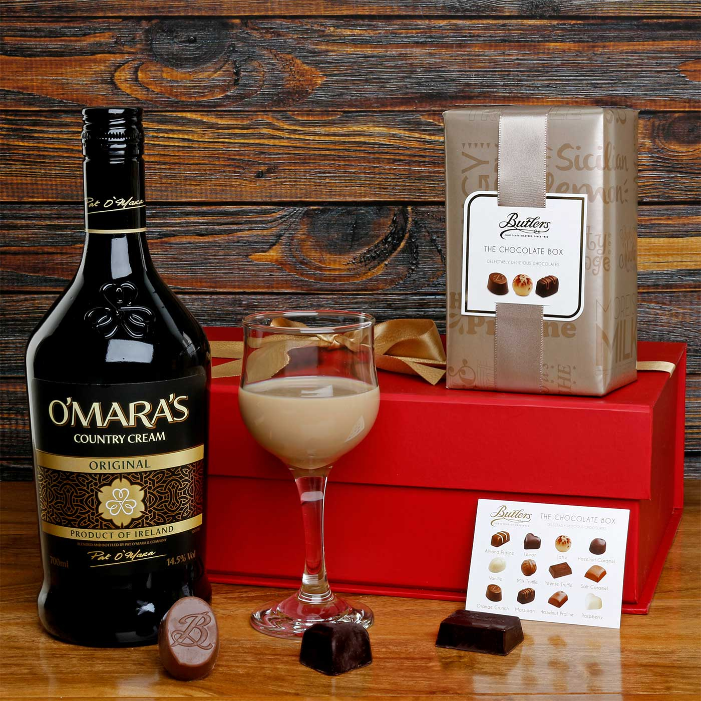 A simple yet classic combination of Irish Country Cream and selection of Irish Butlers chocolates.