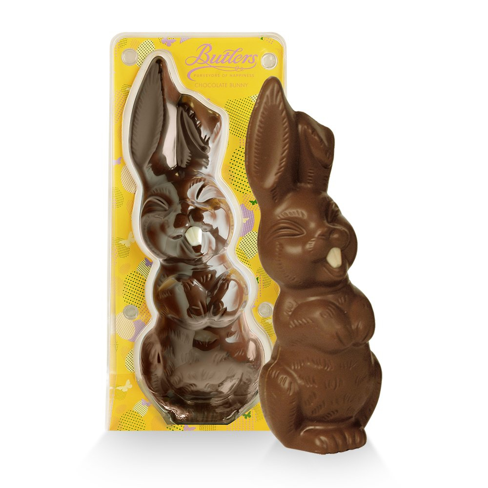Deliciously creamy milk chocolate hollow bunny with a white chocolate decoration. The perfect gift for chocolate lovers of all ages.