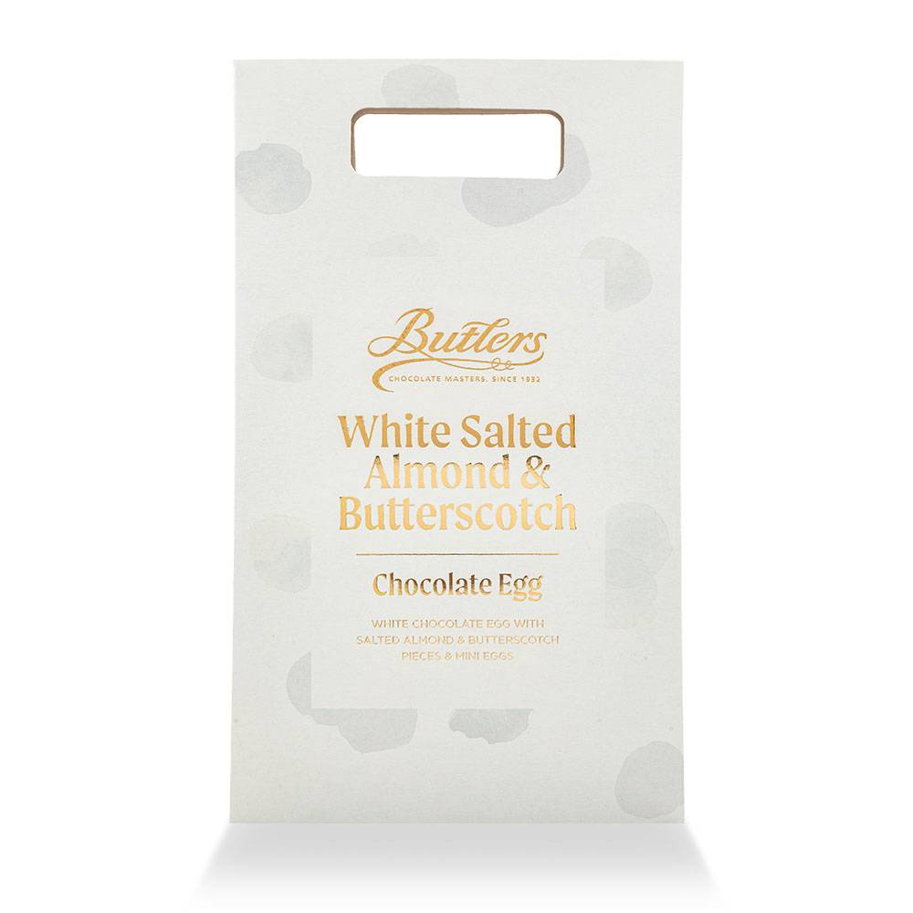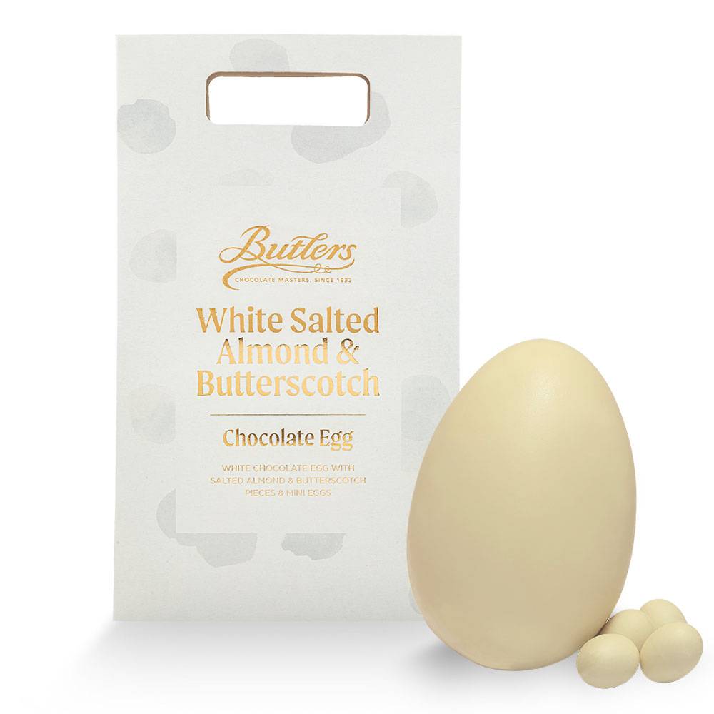 White chocolate lovers will indulge in this White Chocolate Egg with salted almond & butterscotch pieces including 4 mini white truffle eggs.