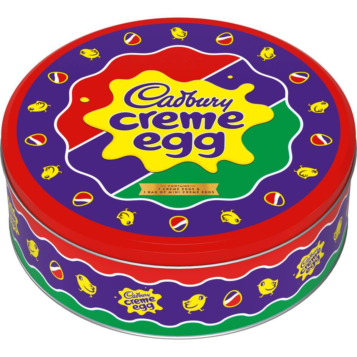 - Gift tin contents: 7 x Cadbury Creme Eggs, 1 x Cadbury Mini Creme Egg Bag 78g