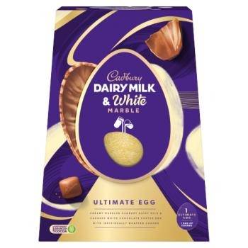 Creamy marbled Cadbury dairy milk & Cadbury white chocolate Easter egg with individually wrapped chunks.