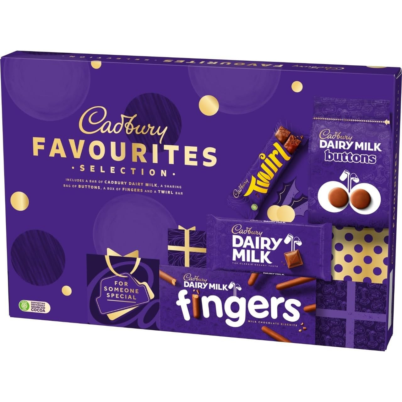 Cadbury Favourites Selection 351g – a delightful box of classic chocolate treats perfect for sharing and gifting any time of year.