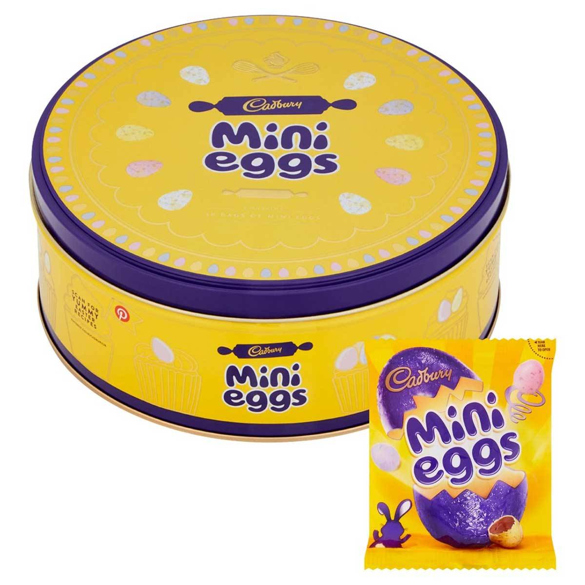 A fantastic, reusable Cadbury Mini Egg Tin filled with amazing Easter Treats. The contents of the tin includes: 10 Bags of Mini Eggs. Cadbury Mini Eggs are delicious Solid milk chocolate eggs encased in lovely, crisp sugar shell. The tin is perfect as a gift or sharing with the family this Easter.
