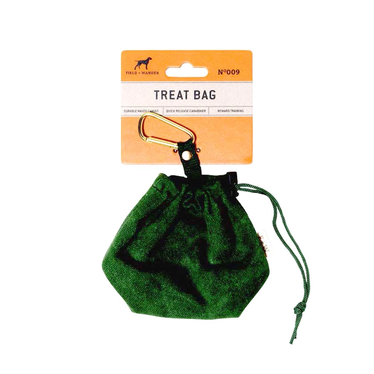 It’s easy to reward training with our durable Treat Bag in green waxed canvas with quick-release brass finish carabiner.