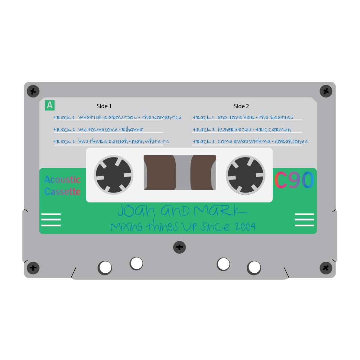 This striking design captures the retro charm of a classic cassette tape, combining nostalgia with your own story for a stylish keepsake that stands out.