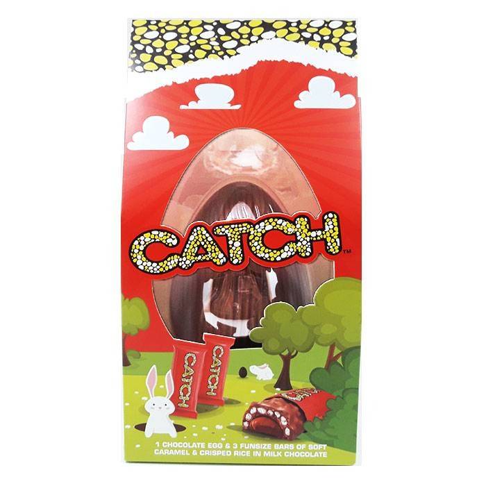 Catch is a soft caramel and crisped rice in milk chocolate. Keeps your taste buds asking for more.