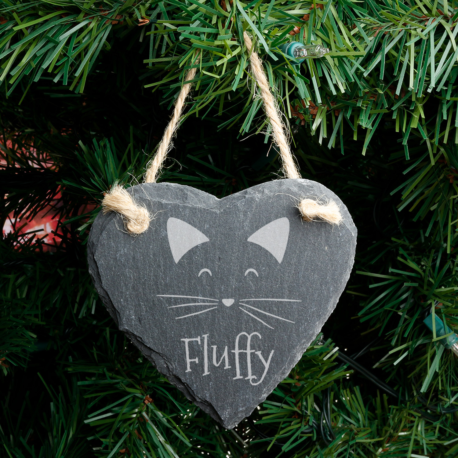 Cat's Name - Personalised Heart Slate Hanging Decoration