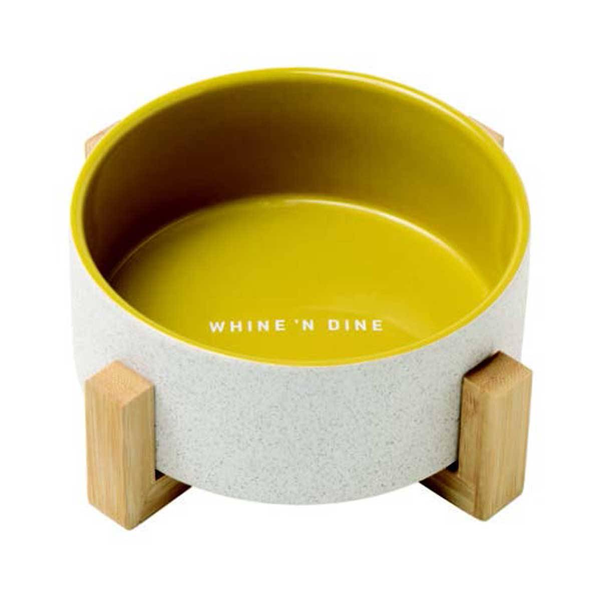 Ceramic Dog Bowl With Bamboo Stand - Yellow