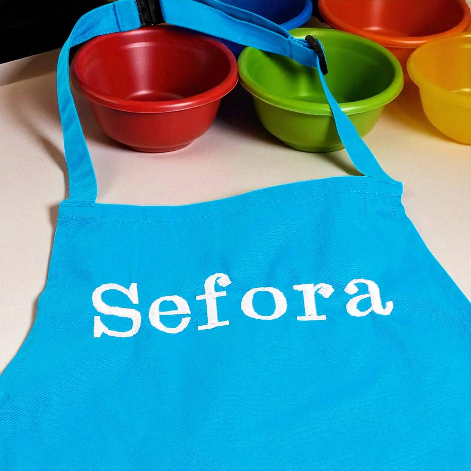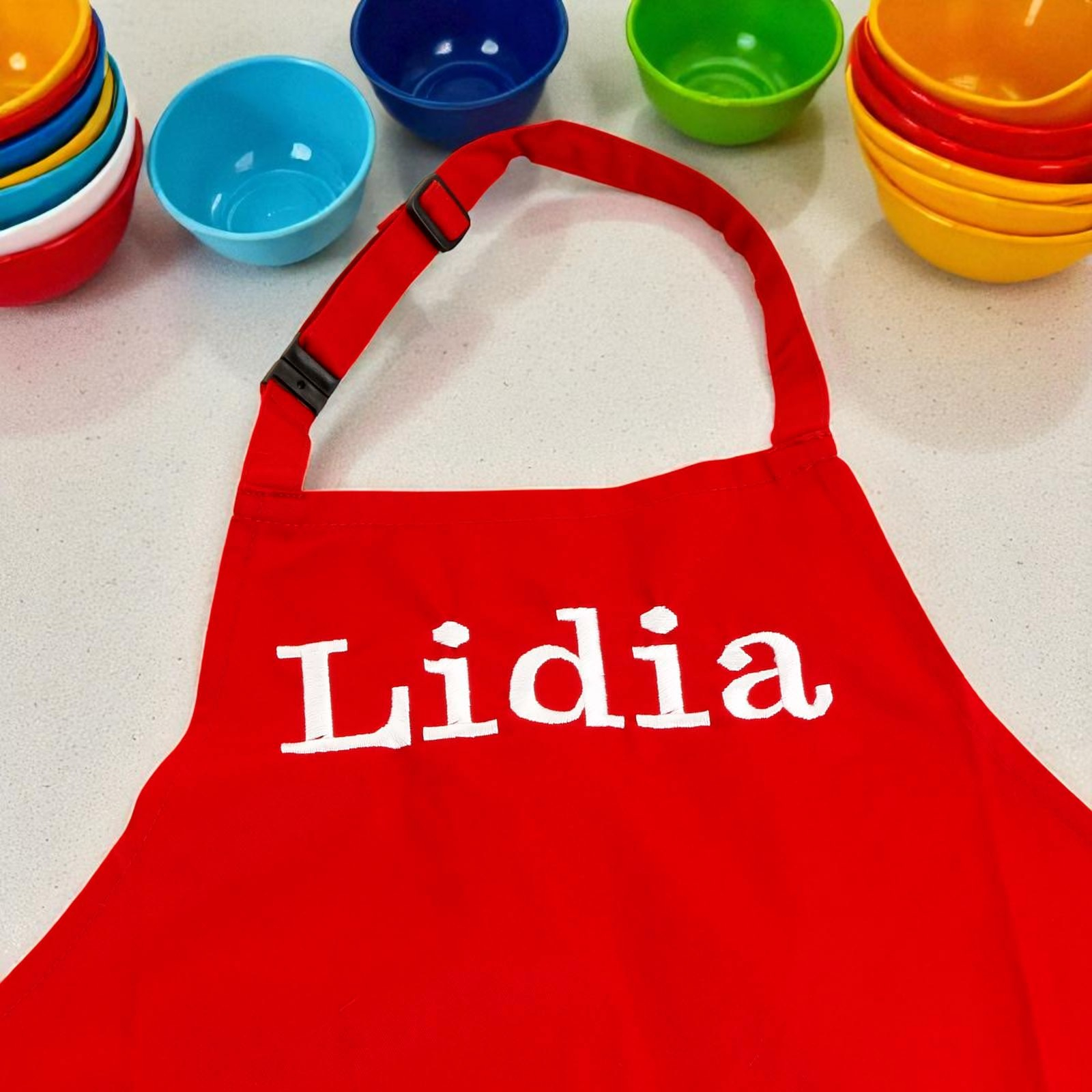 This high quality Children's Apron is sure to be a hit for any girl or boy who likes to get messy baking in the kitchen or painting. Their first name is embroidered into the front of the apron. The neutral is suitable for both boys and girls and the neckband is adjustable to size.