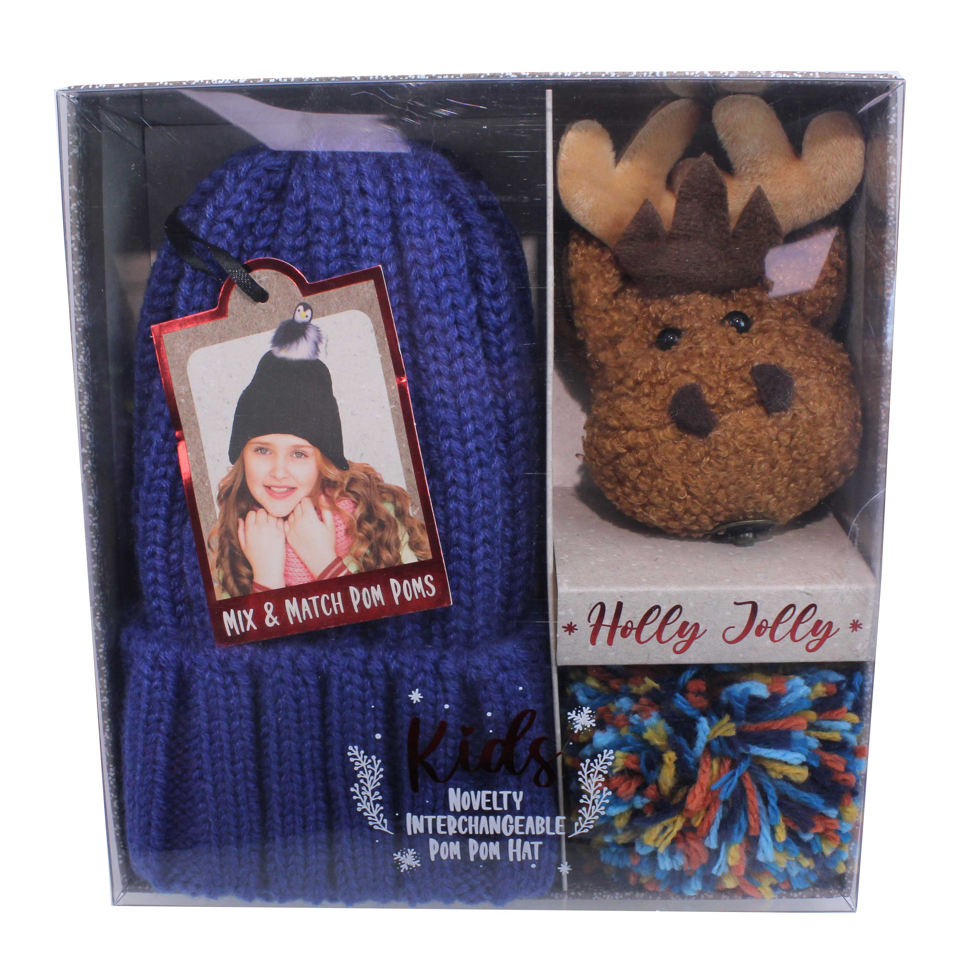 Christmas Kids Novelty Interchangeable Pom Pom Hat