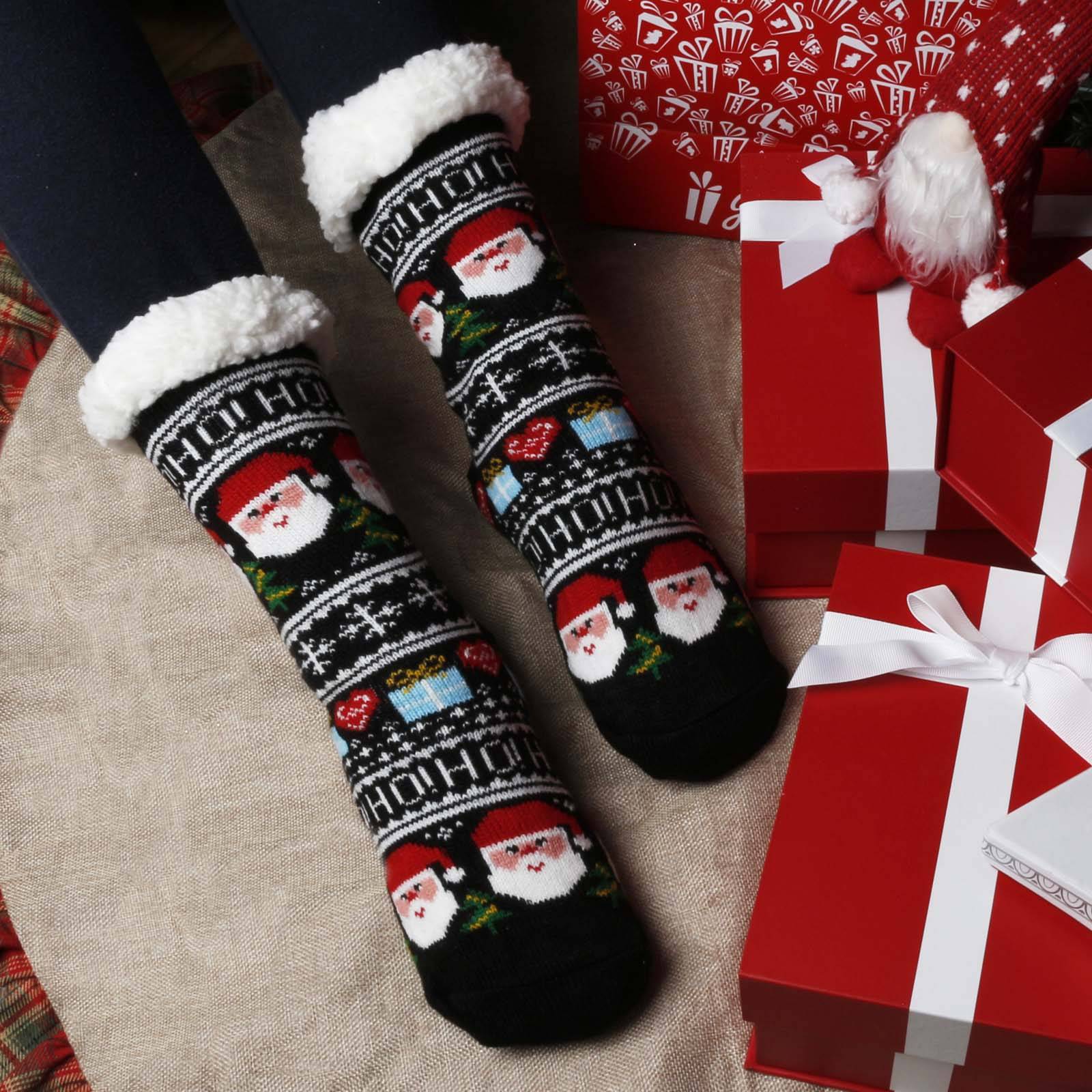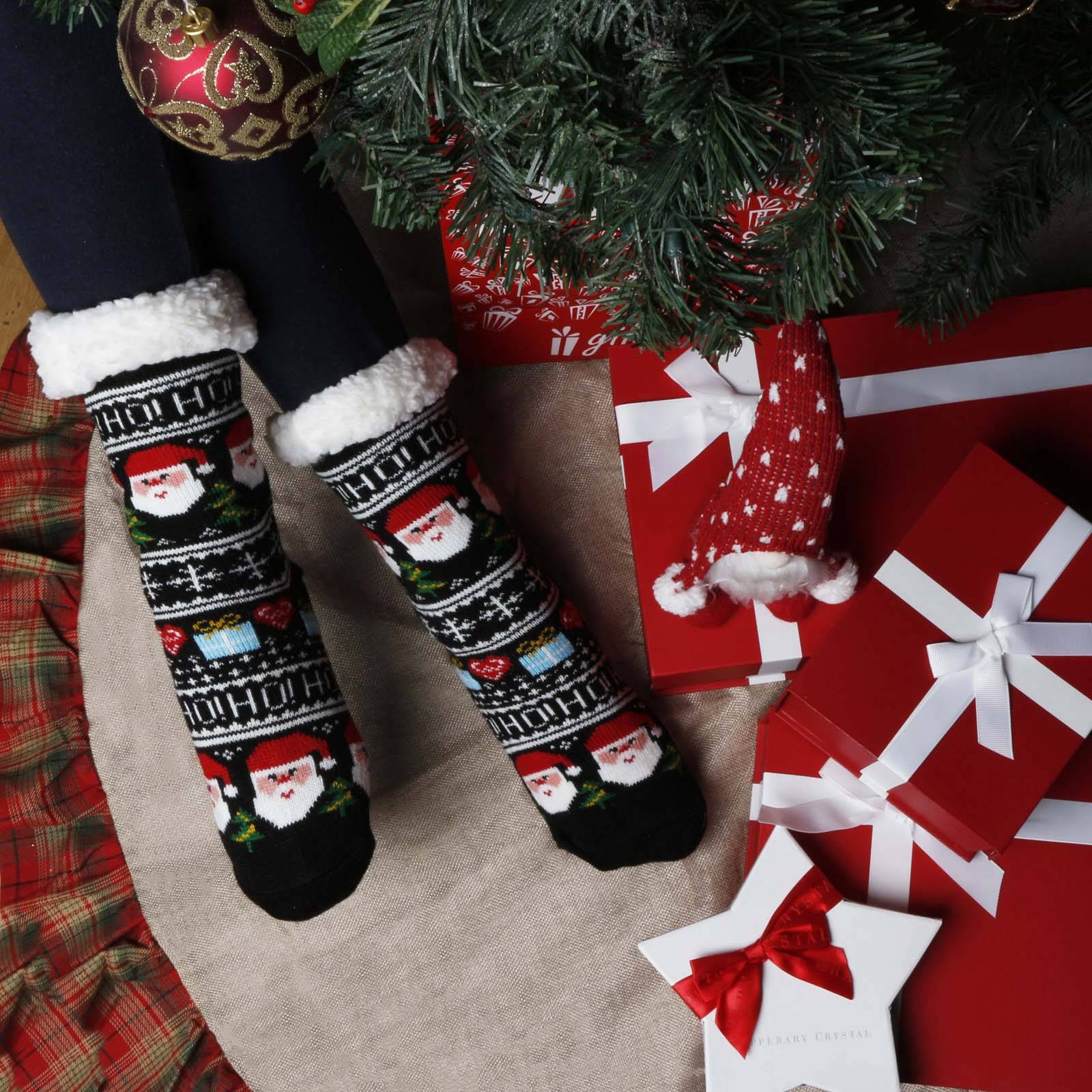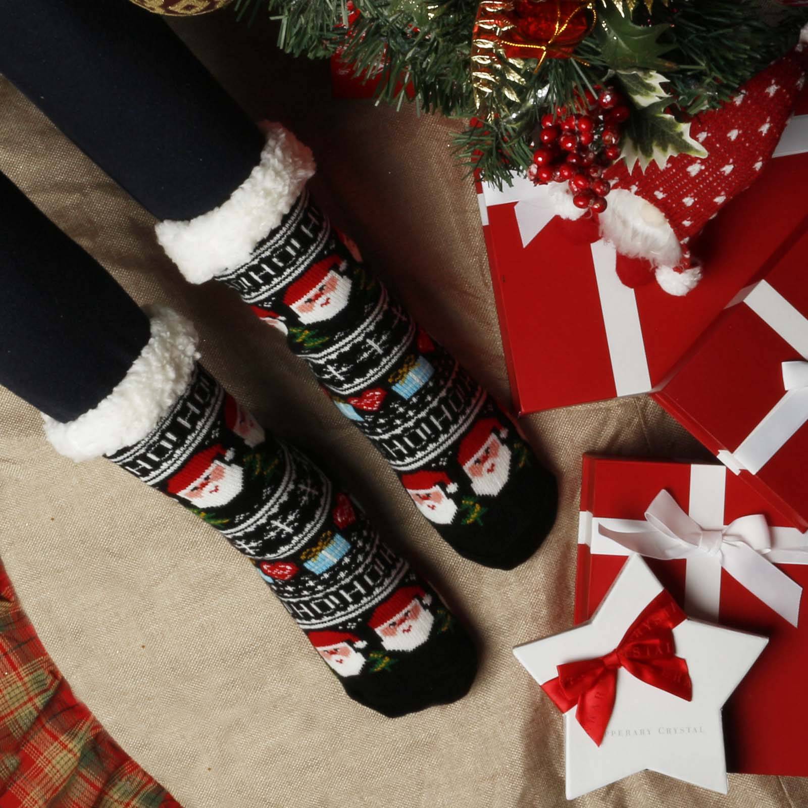 Comfy Christmas Thermal Slipper Socks have ultra plush fabric, non slip grips and are machine washable.