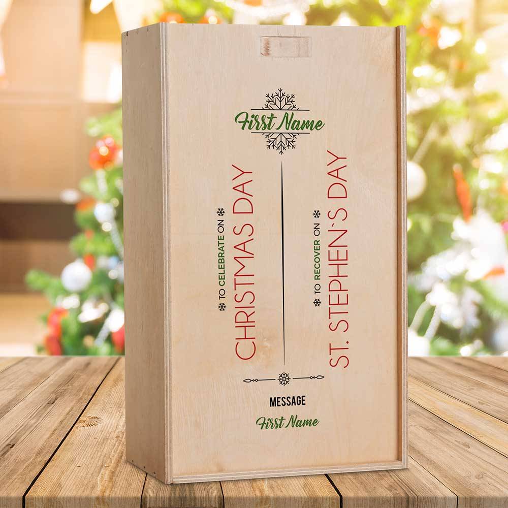 Christmas & Stephens Day Personalised Wooden Double Wine Box