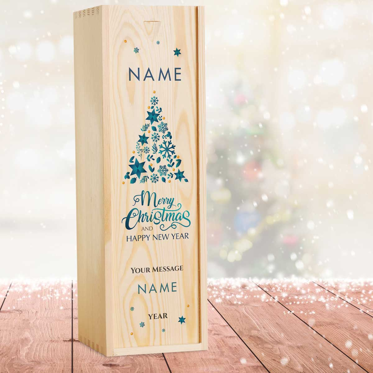 Christmas Tree Personalised Single Champagne Box