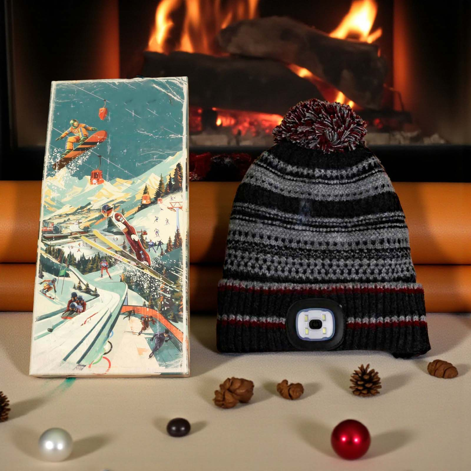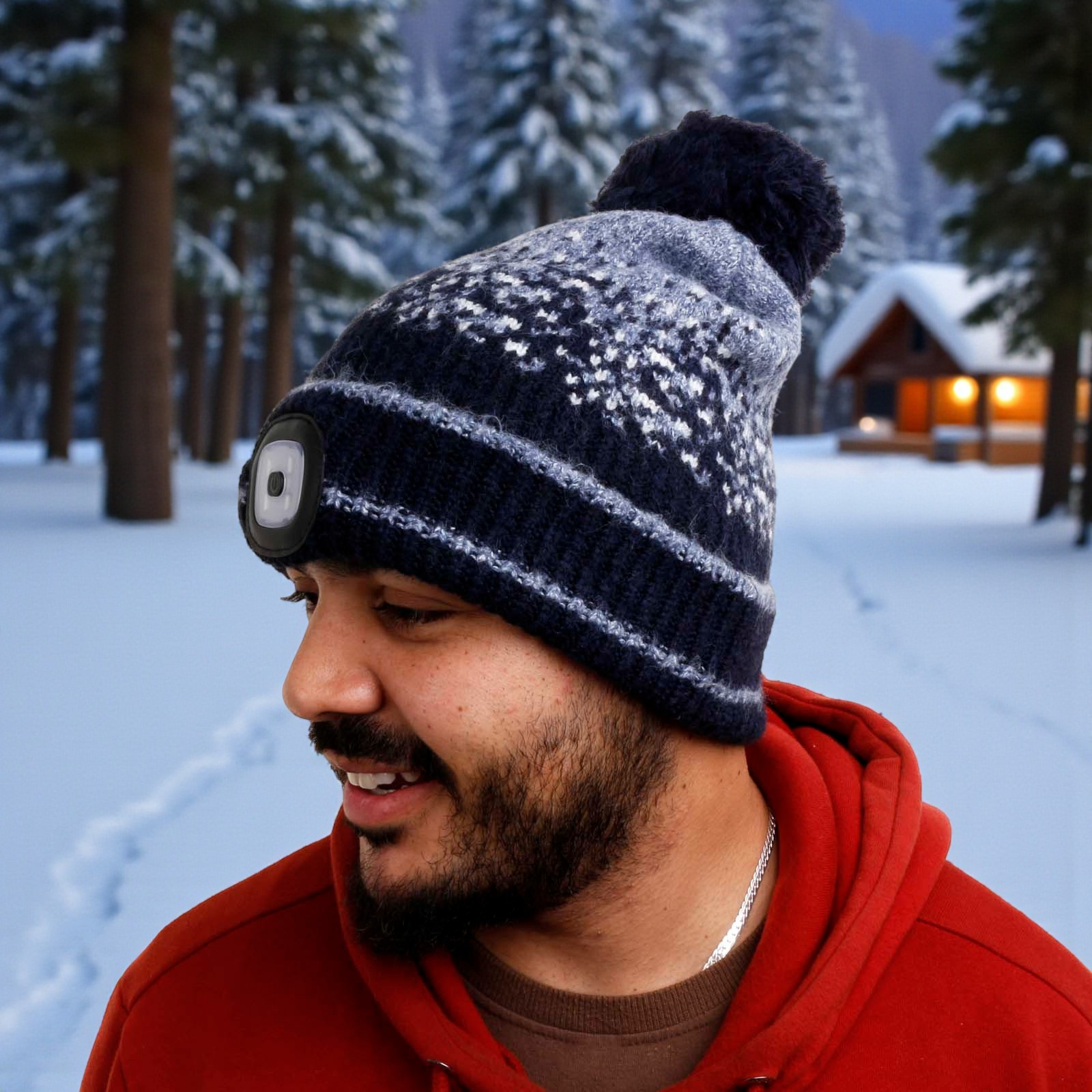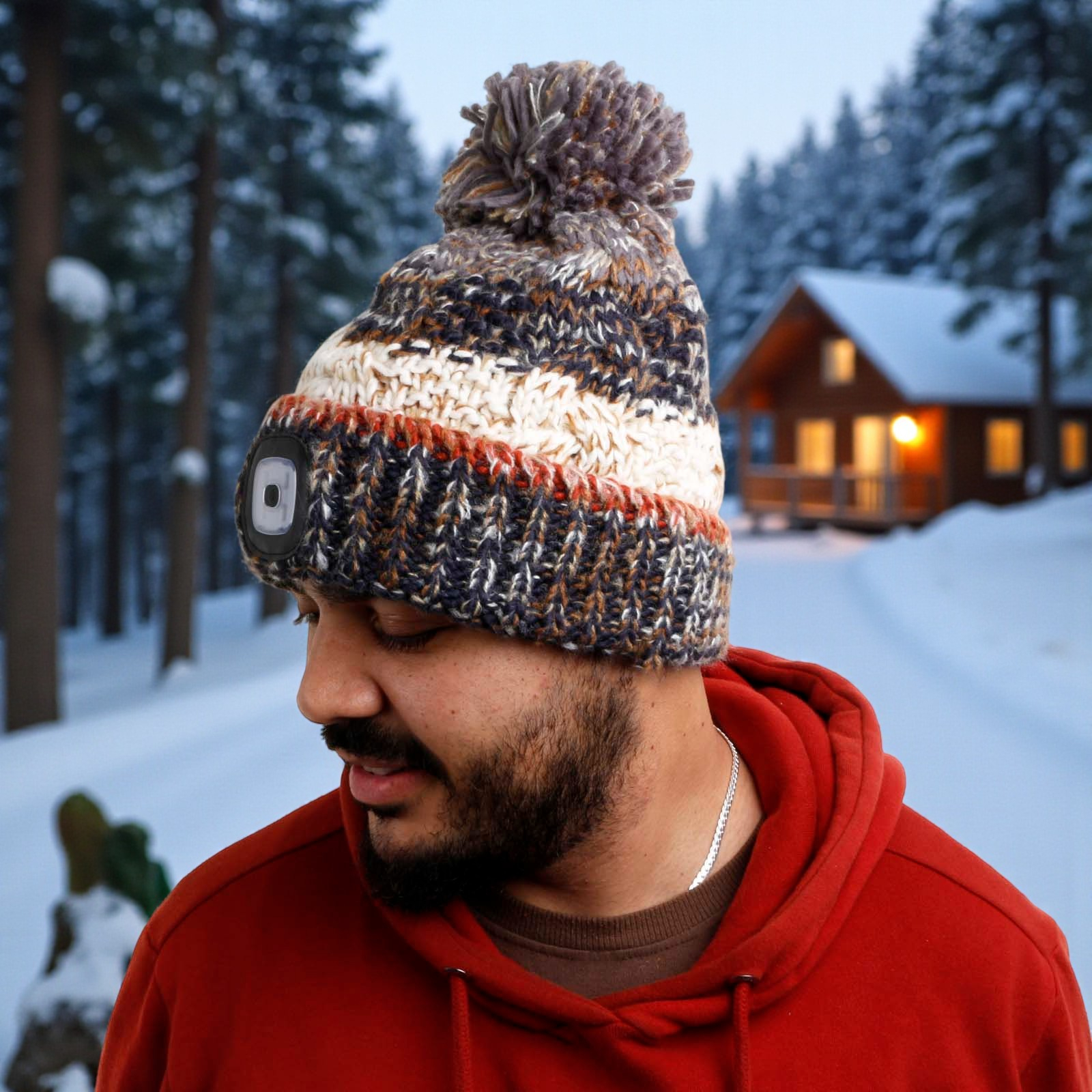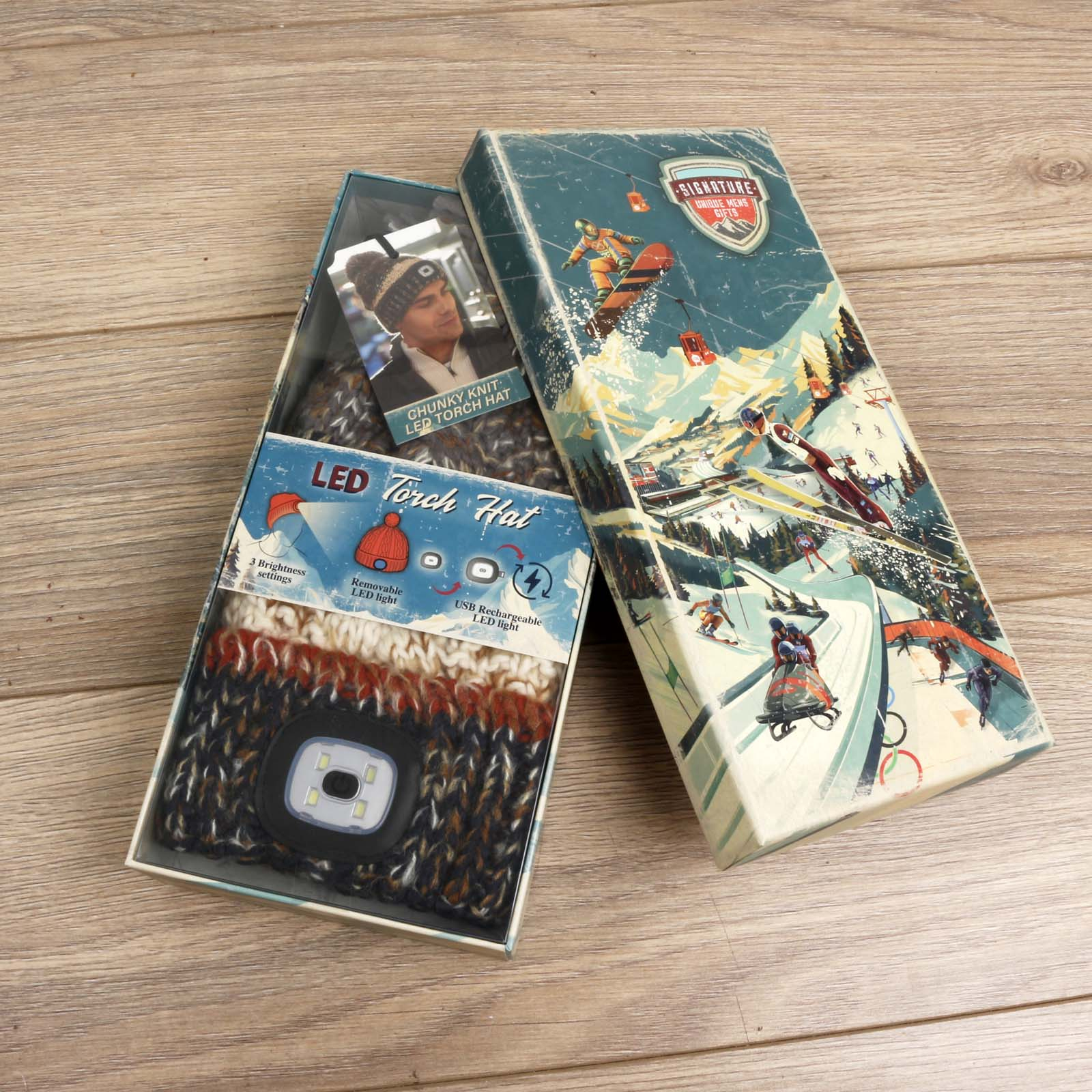 Illuminate every outdoor adventure with the Chunky Knit Rechargeable LED Torch Hat!