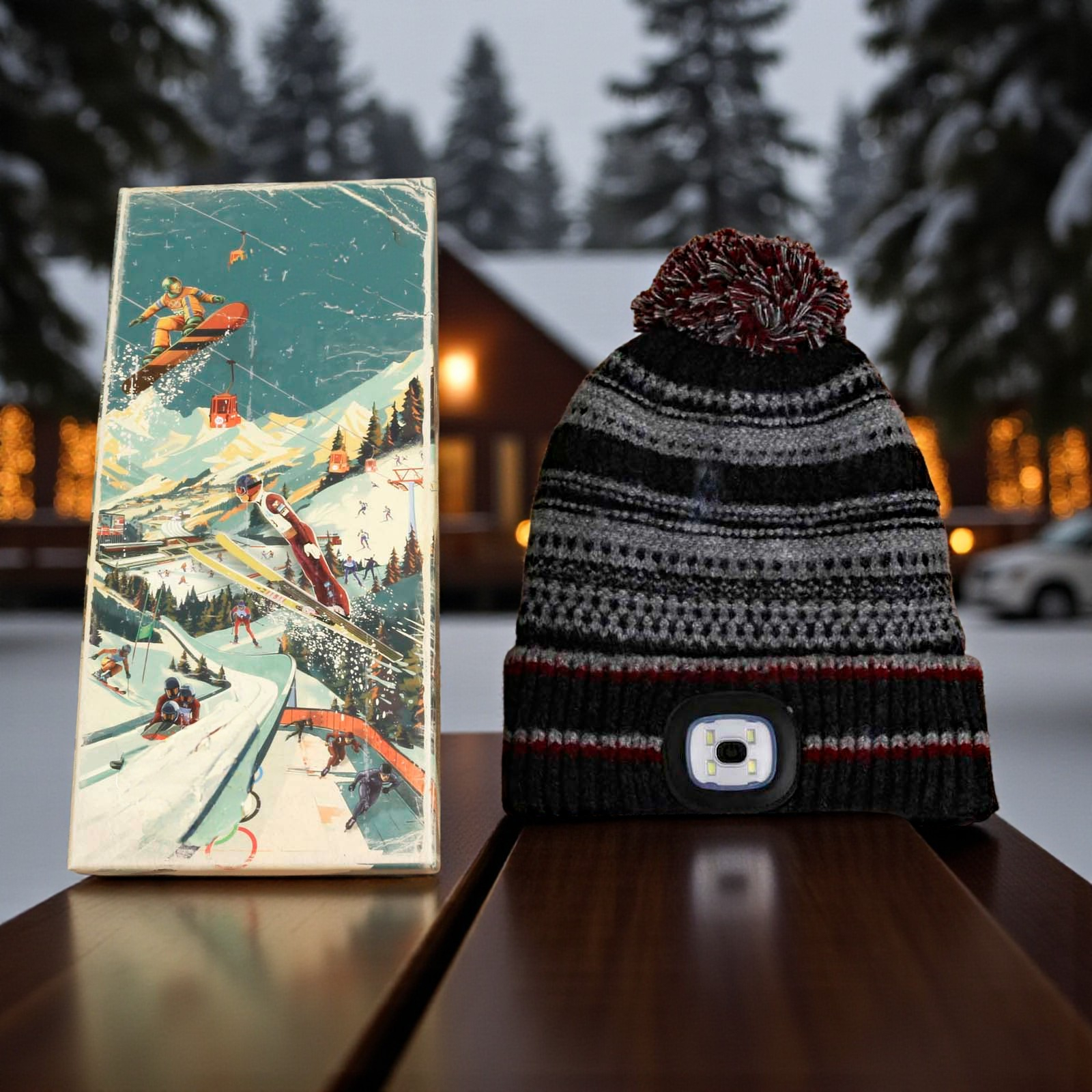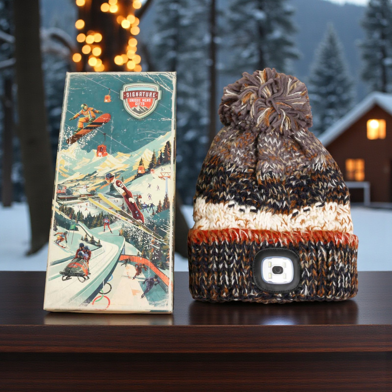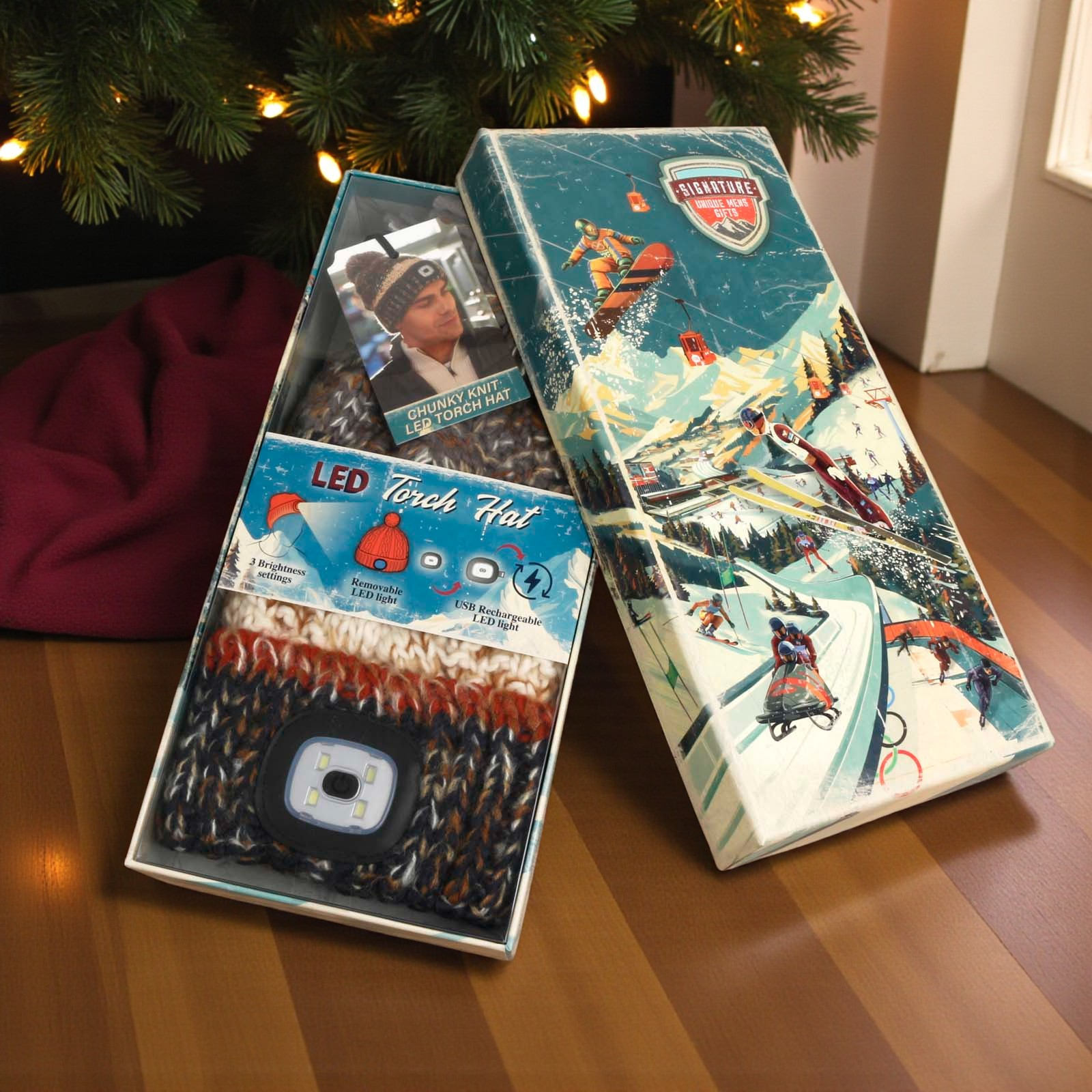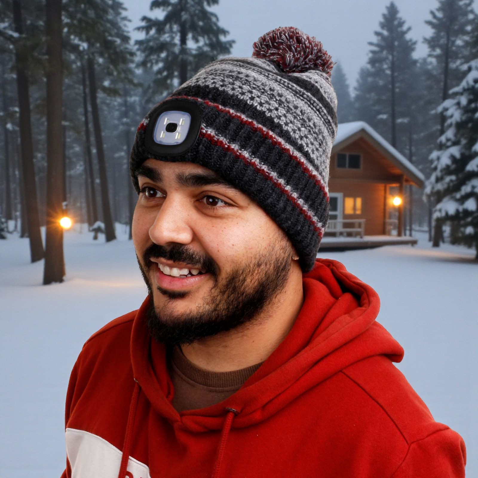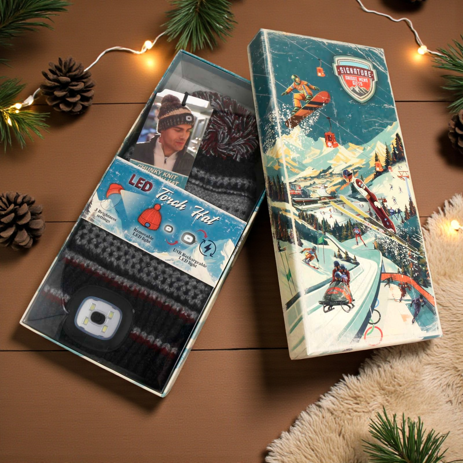 Illuminate every outdoor adventure with the Chunky Knit Rechargeable LED Torch Hat!
