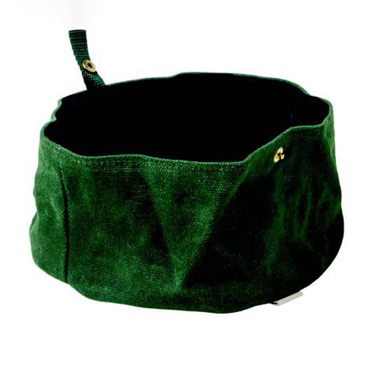 Outside waxed canvas and brass finish hardware, inside black waterproof lining.