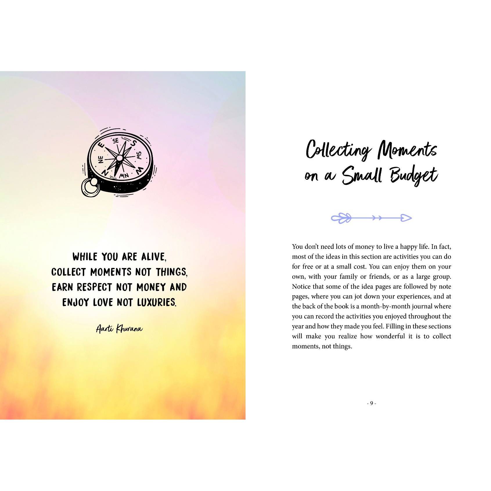 - This beautiful and fully illustrated book is thoughtfully designed to not only inspire new adventures on any budget, but also to provide space for the reader to record the new memories they create.
