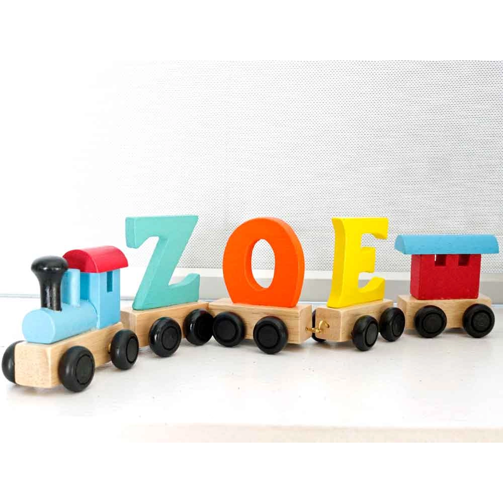 How to order: Select the number of letters from the dropdown, then enter the child's name to personalise your train. The price includes the first two letters; any additional letters can be added as needed.