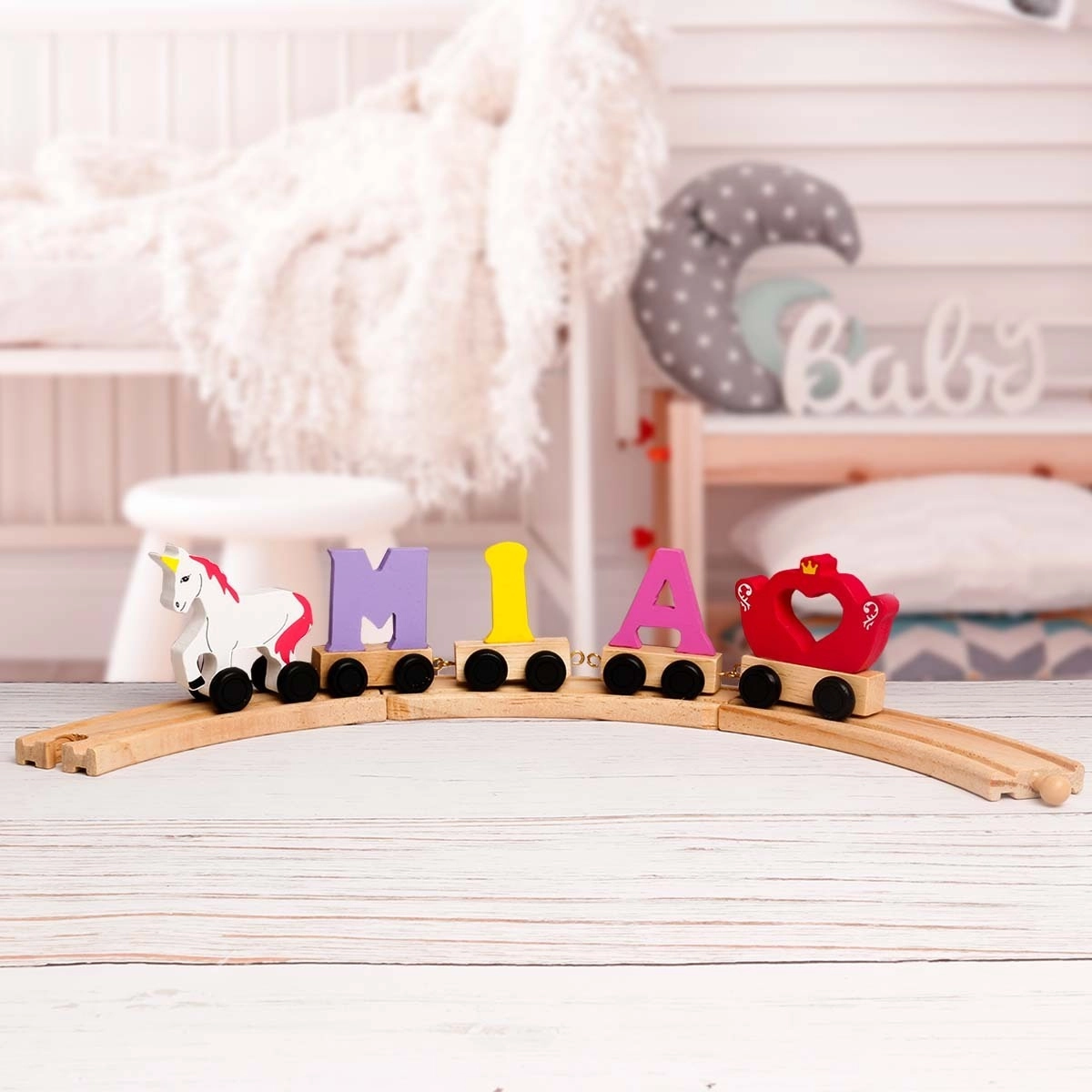 - Customisable Name: Simply select the number of letters and enter your child’s name to create a one-of-a-kind wooden train featuring their personalised letters.