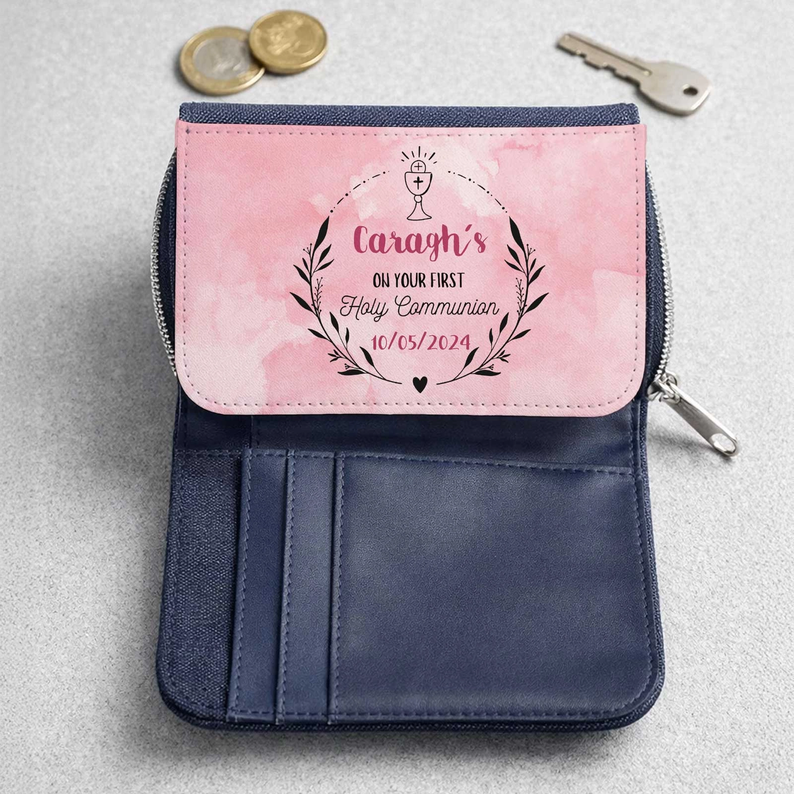 Celebrate a special milestone with our Communion Personalised Wallet/Purse, the perfect blend of style, practicality, and personal sentiment. Expertly designed to combine everyday functionality with a unique custom touch, this personalised wallet is a thoughtful and memorable gift that your recipient will cherish for years to come.