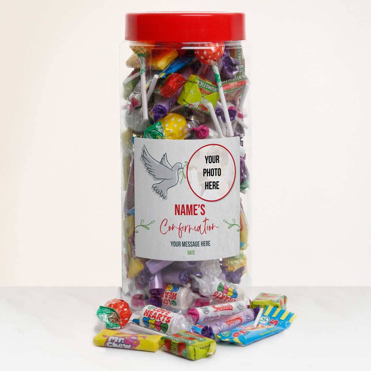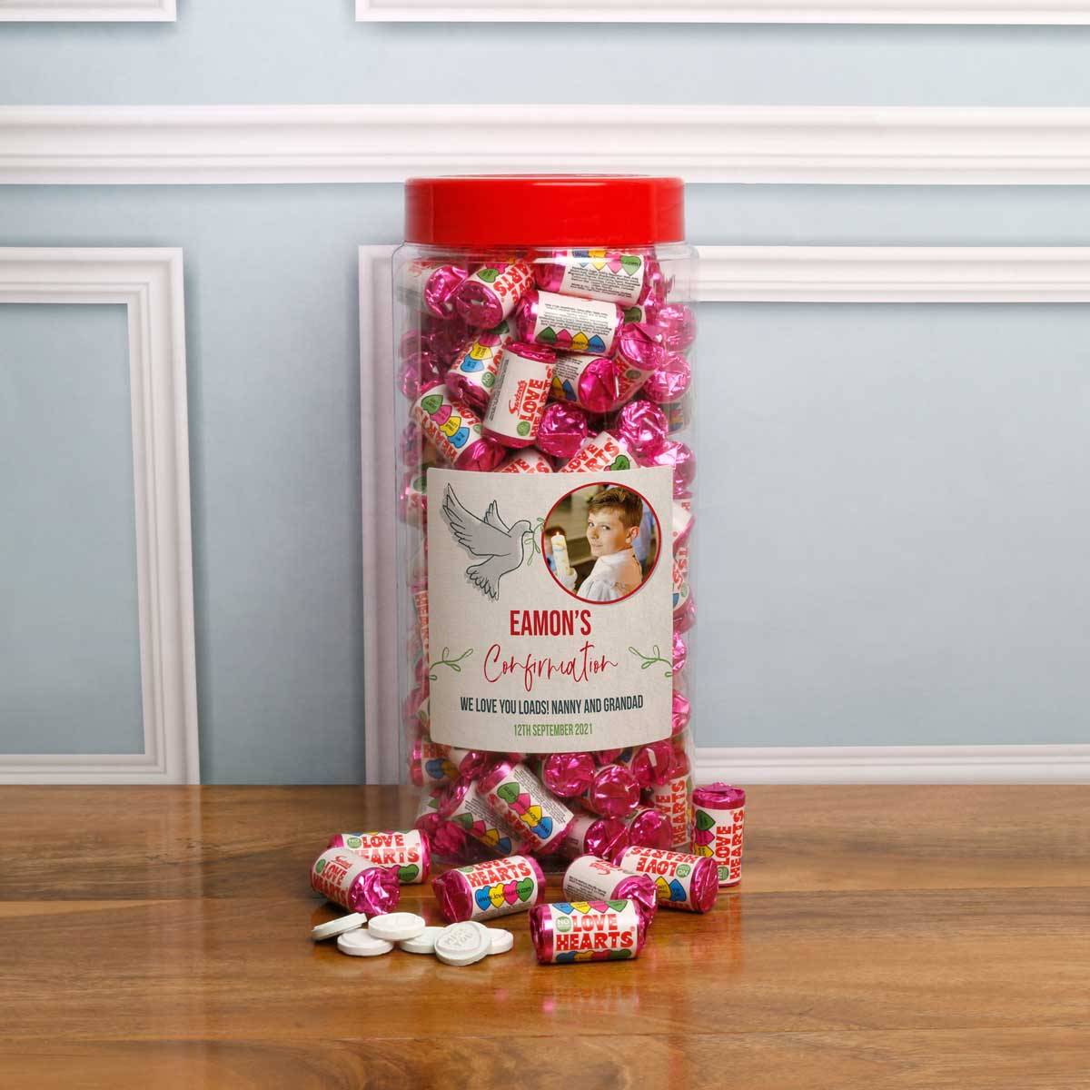 Packed full of Love Heart sweets, the jar's label is personalised with your recipient's name and your greeting.