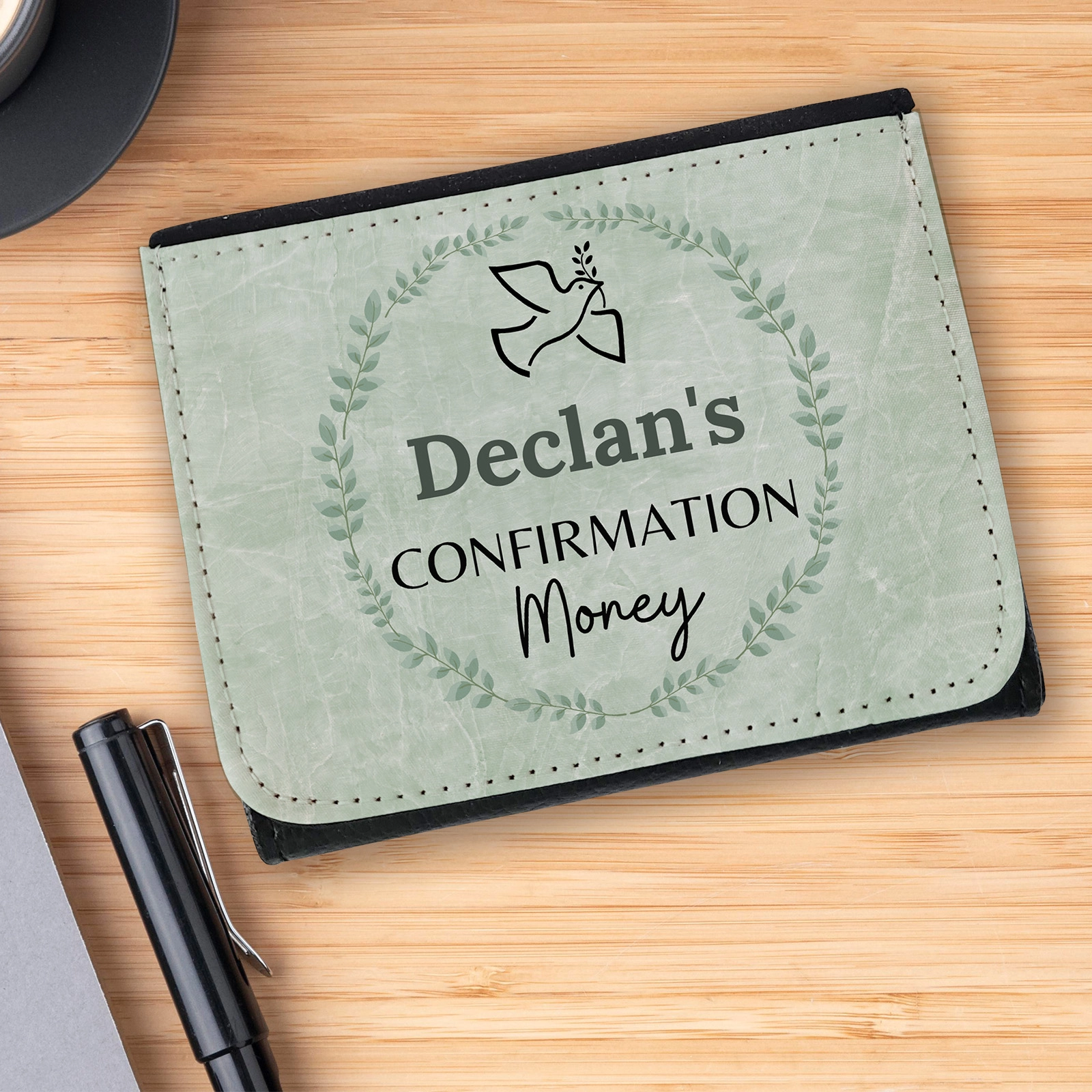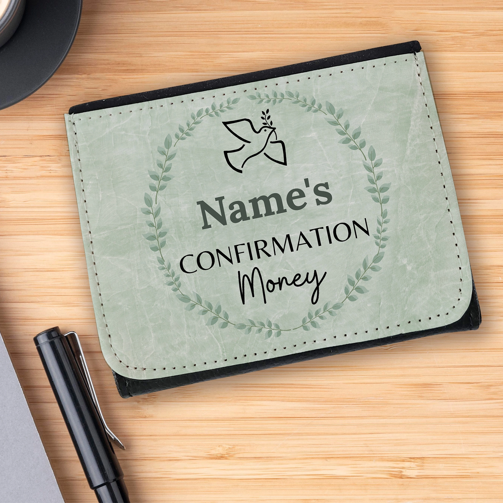 The wallet is personalised with the name of your recipient making their confirmation.