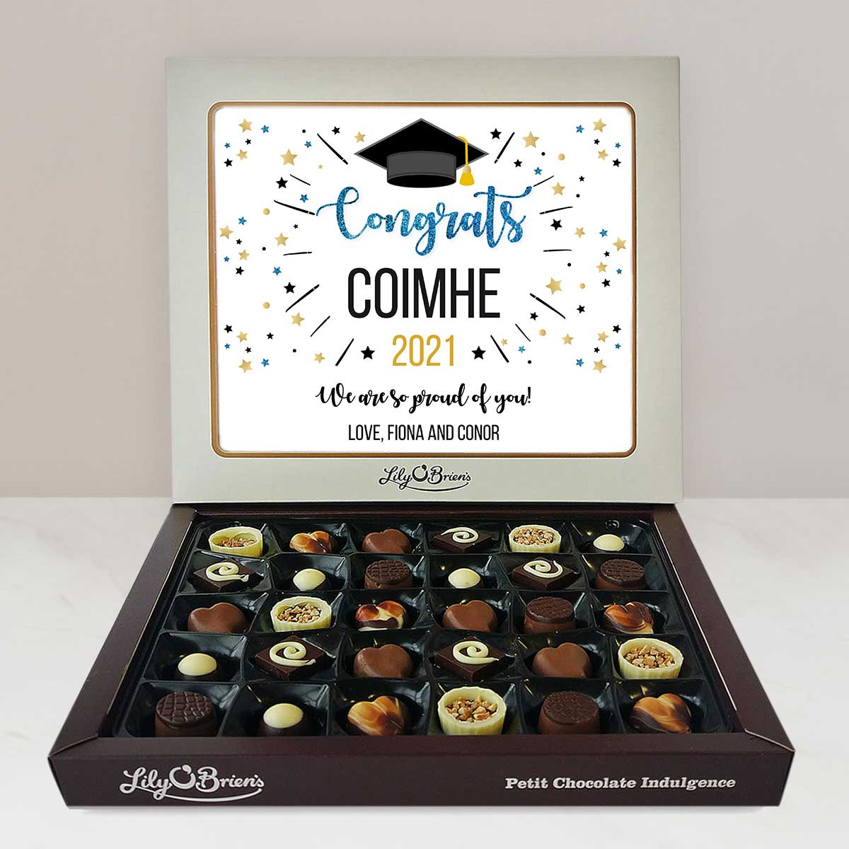 This Personalised Chocolate Box is filled with the Lily O'Brien's Luxury Chocolate collection. Approximate box dimensions: 290mm x 240mm x 40mm.