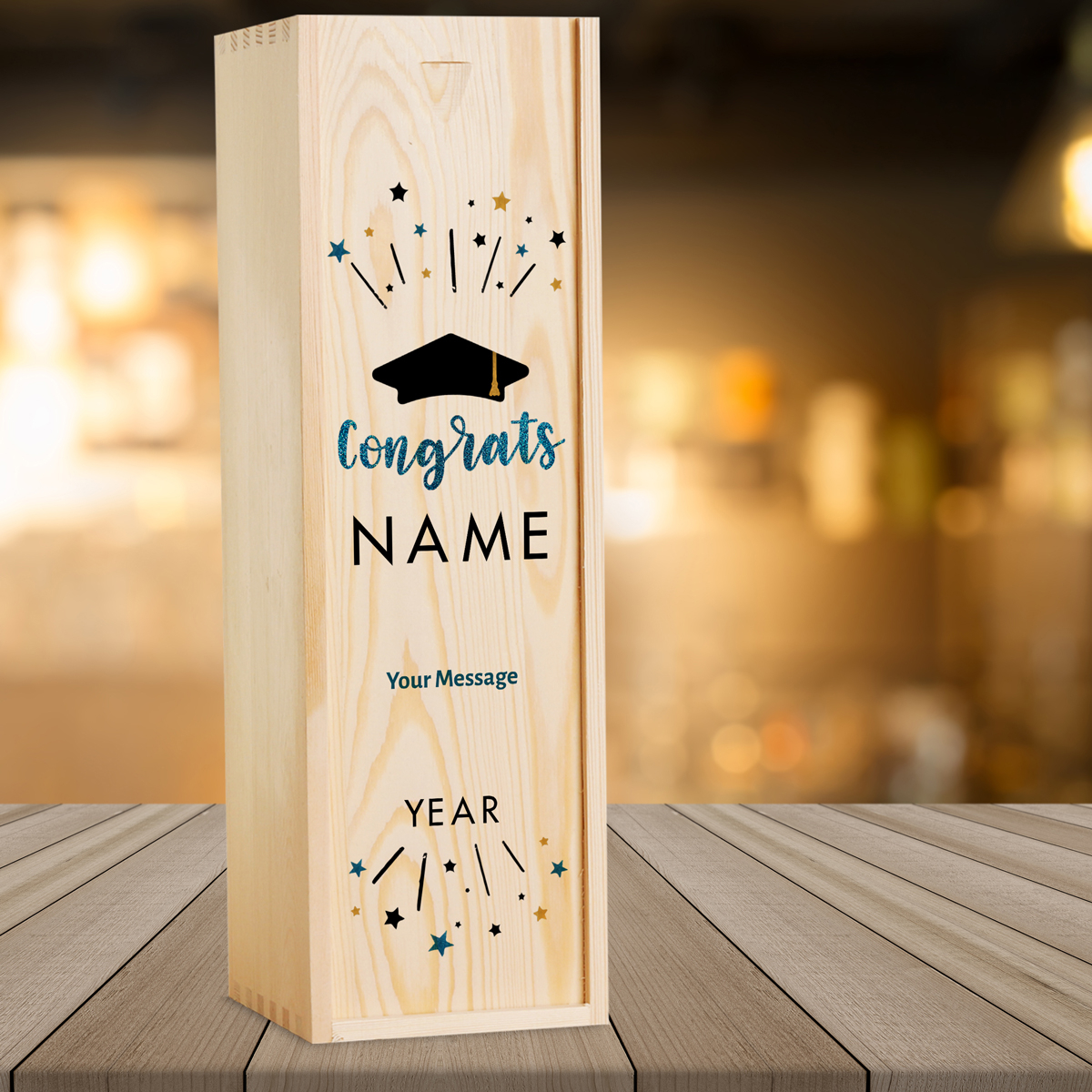 Congrats Graduation Personalised Single Wooden Champagne Box