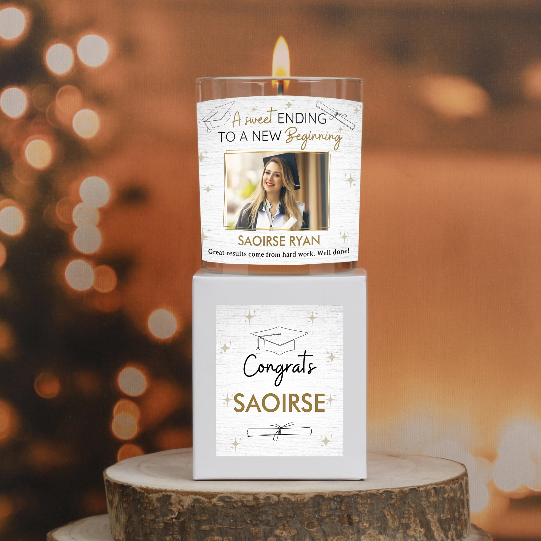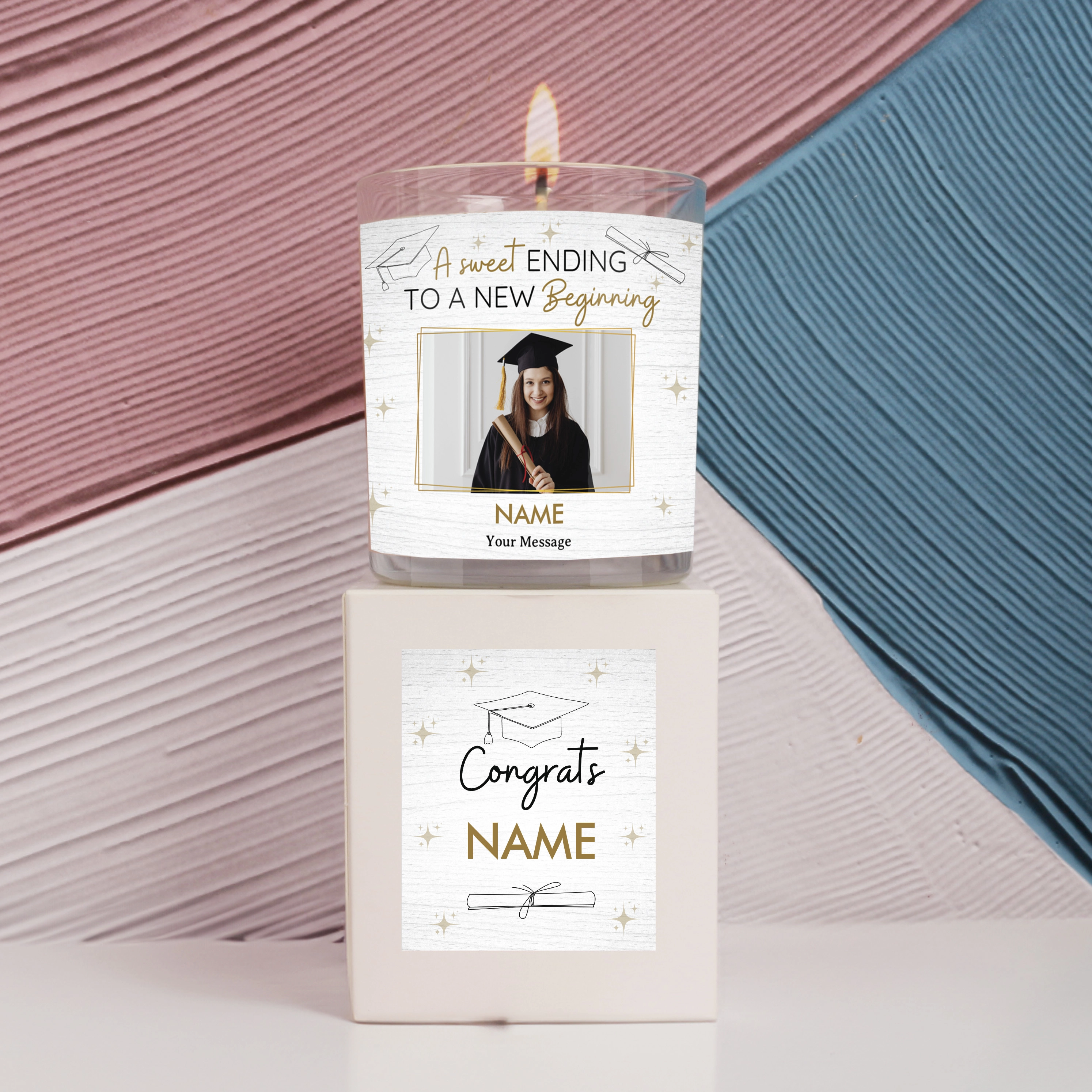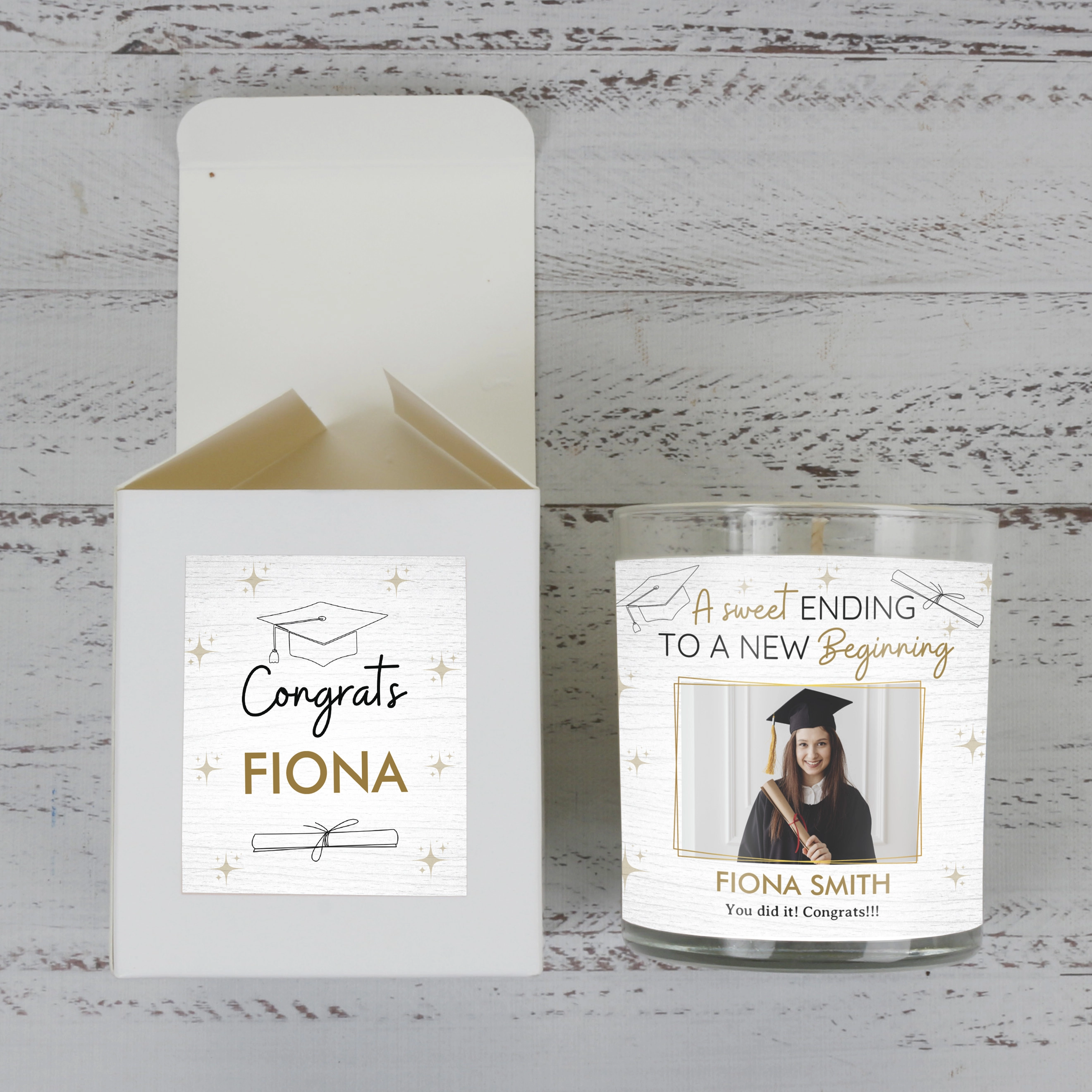Find the perfect gift for graduation with our Personalised Scented Soy Candles, proudly made in Ireland.