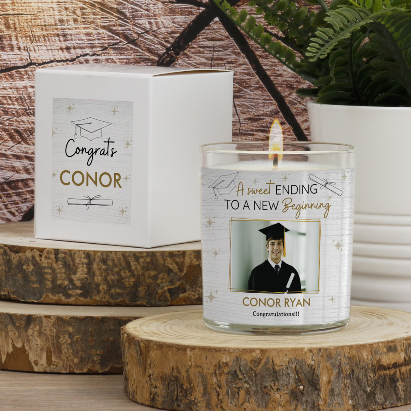 Find the perfect gift for graduation with our Personalised Scented Soy Candles, proudly made in Ireland.