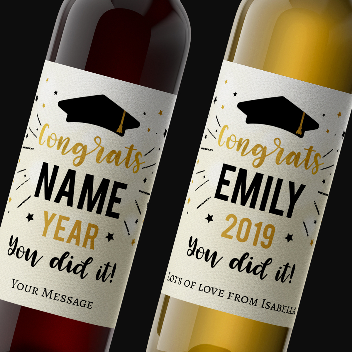 This novel bottle of personalised wine is truly a great gift to celebrate and commemorate your recipient's occasion. Simply complete the details and we'll have the wine label custom printed with your personalised details.