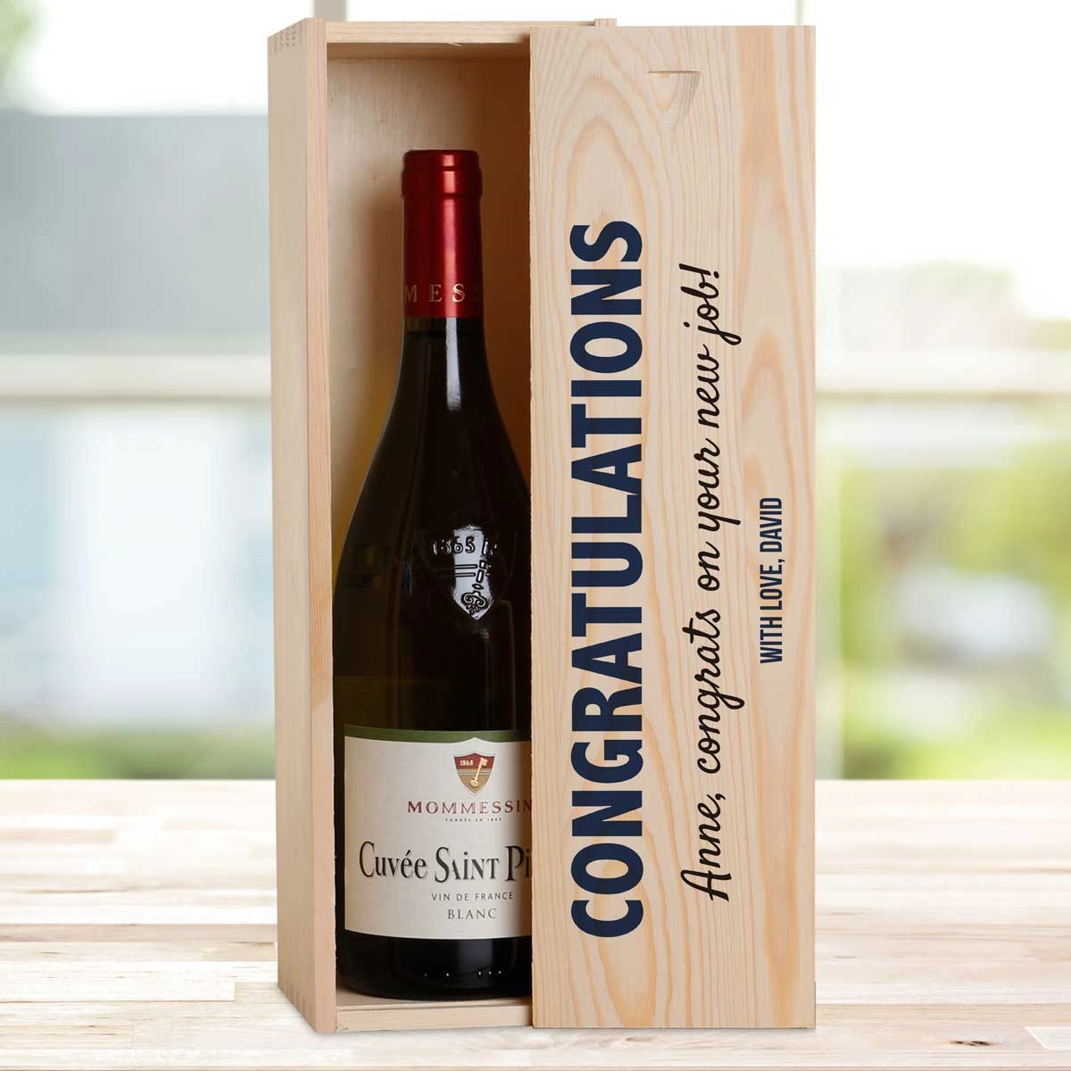 This personalised wine box with a bottle of wine makes the perfect present.