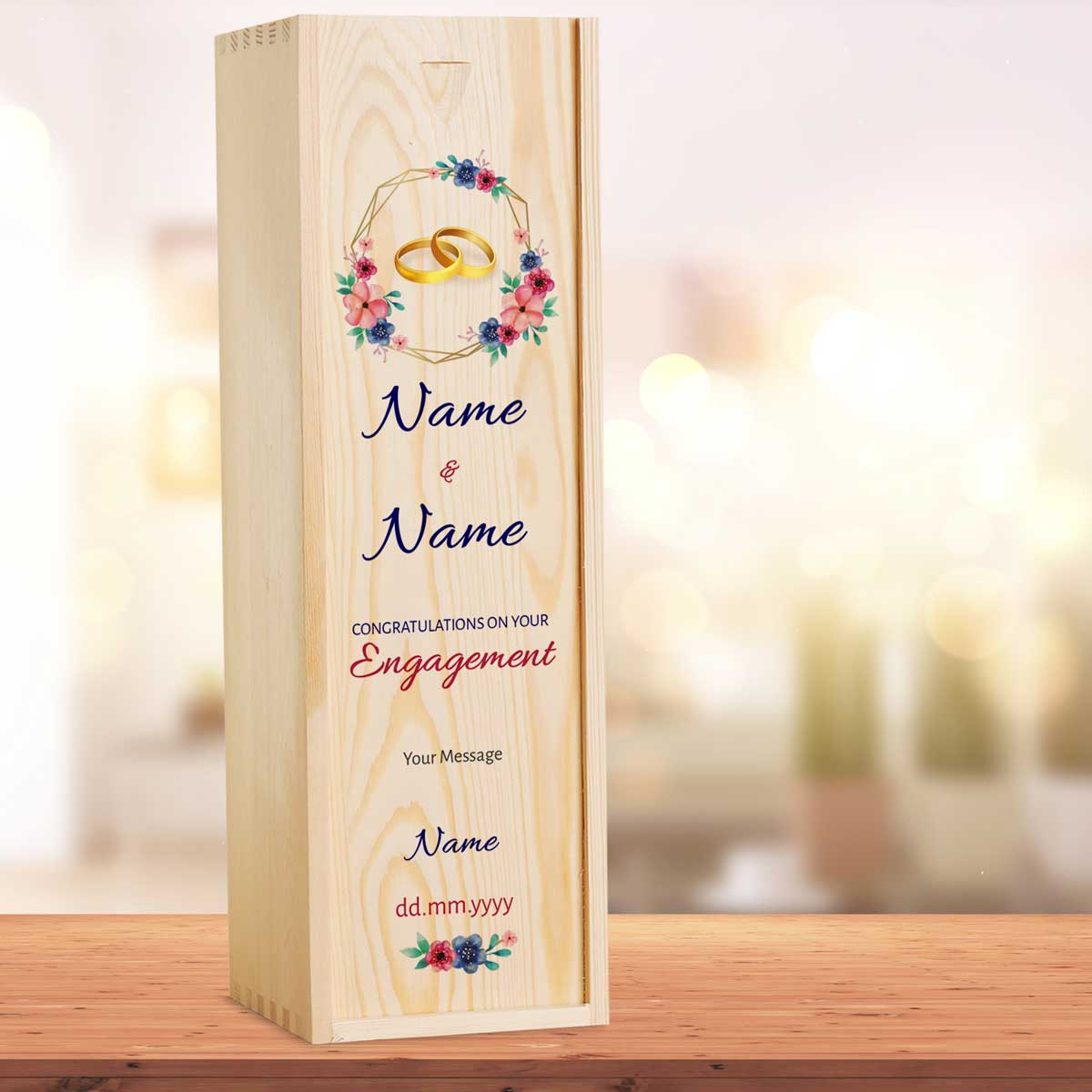 This personalised wine box with a bottle of wine makes the perfect Engagement gift.