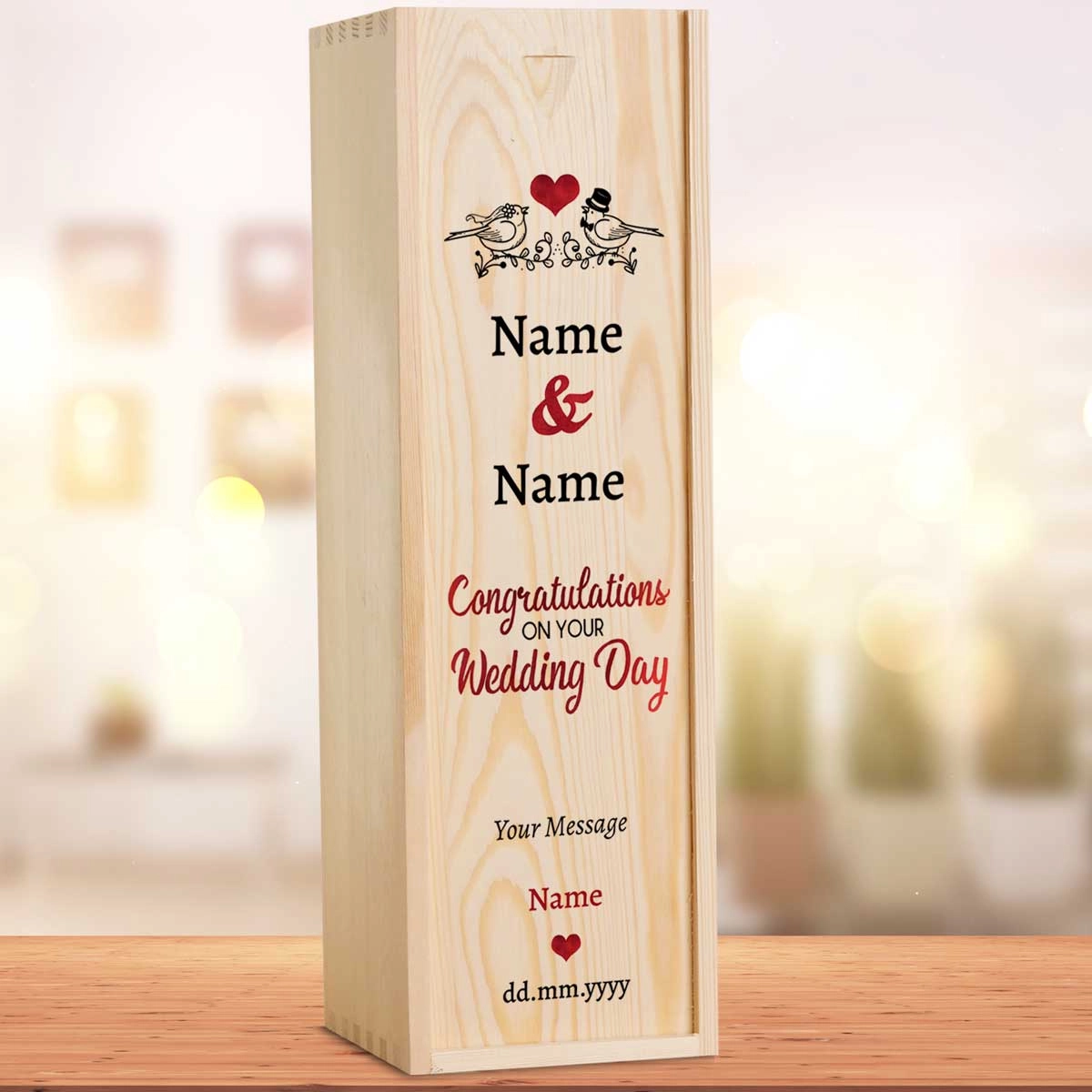 Congratulations On Your Wedding Day Birds Personalised Wooden Single Wine Box