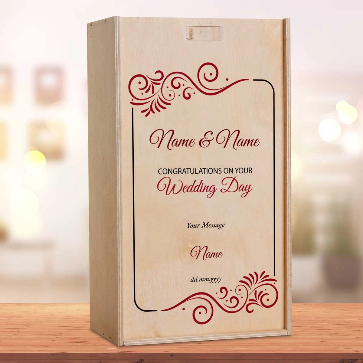 This personalised wooden box with two bottles of Champagne makes the perfect Wedding gift. One bottle to be enjoyed at Wedding's Day, one bottle for your first anniversary.