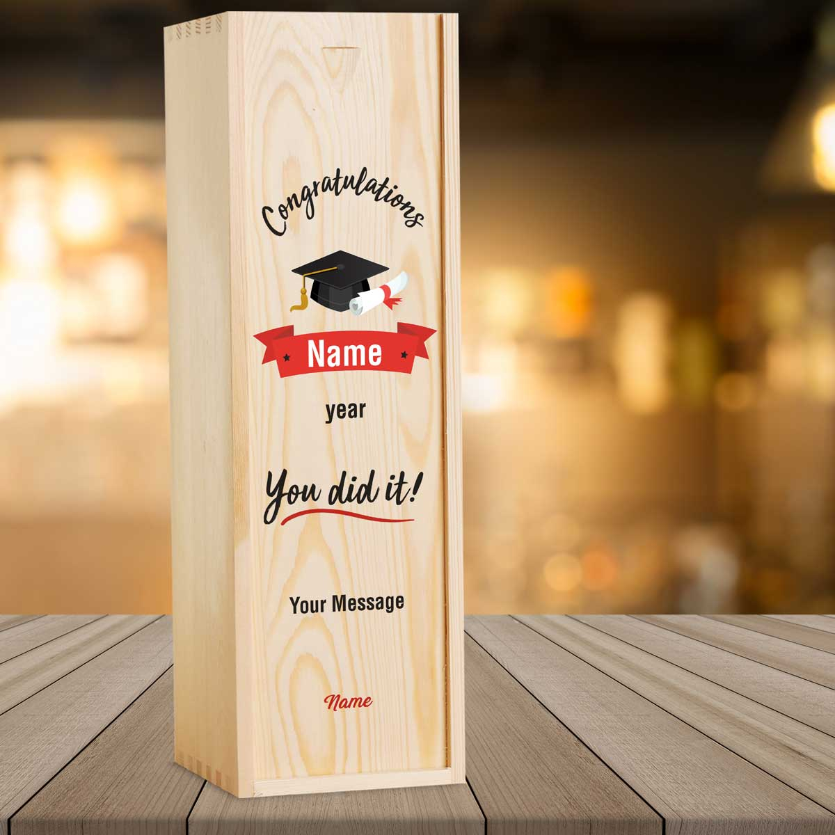 Congratulations You Did It! Graduation - Personalised Wooden Single Wine Box
