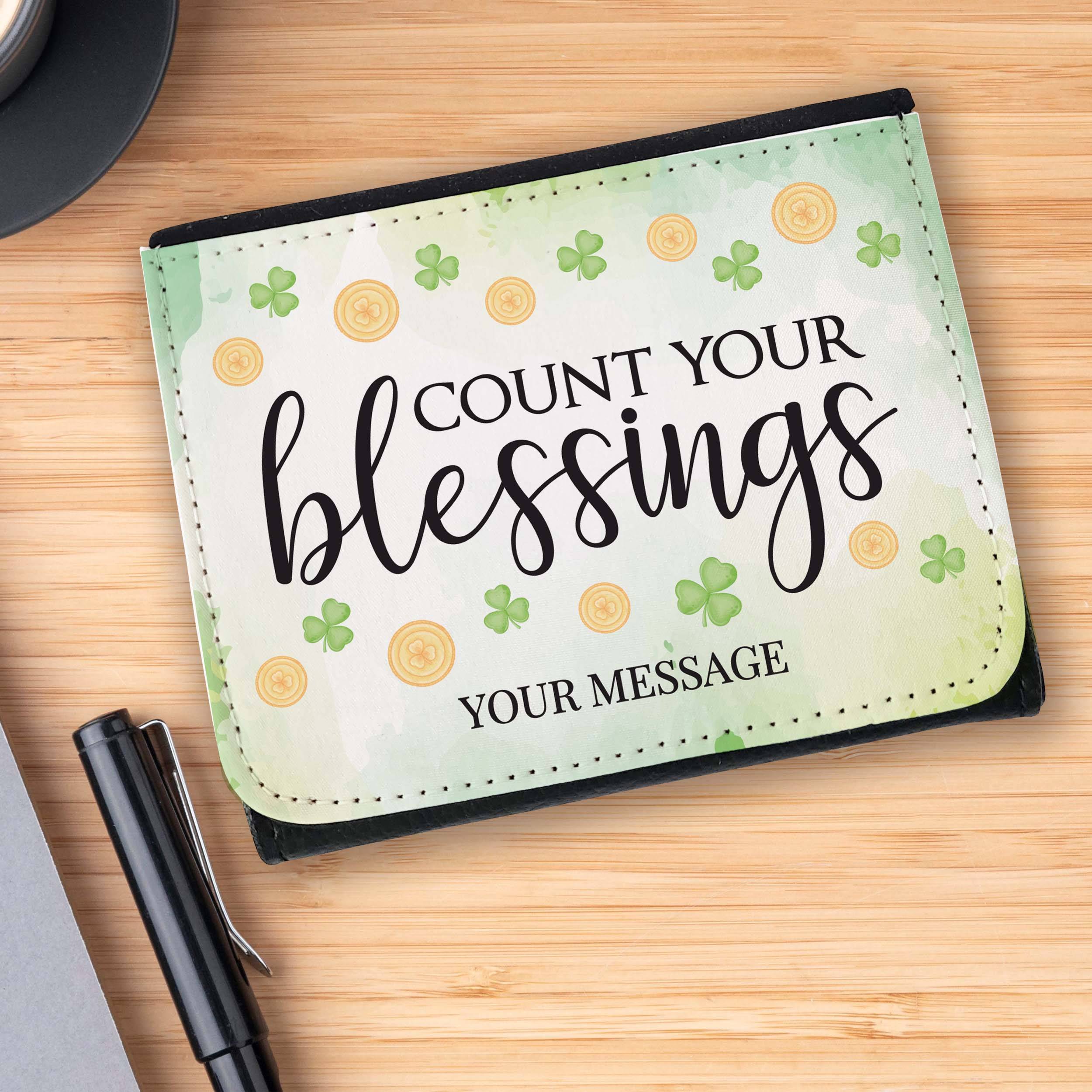 This unique wallet is made of faux black leather. It has seven internal compartments for cards and documents.