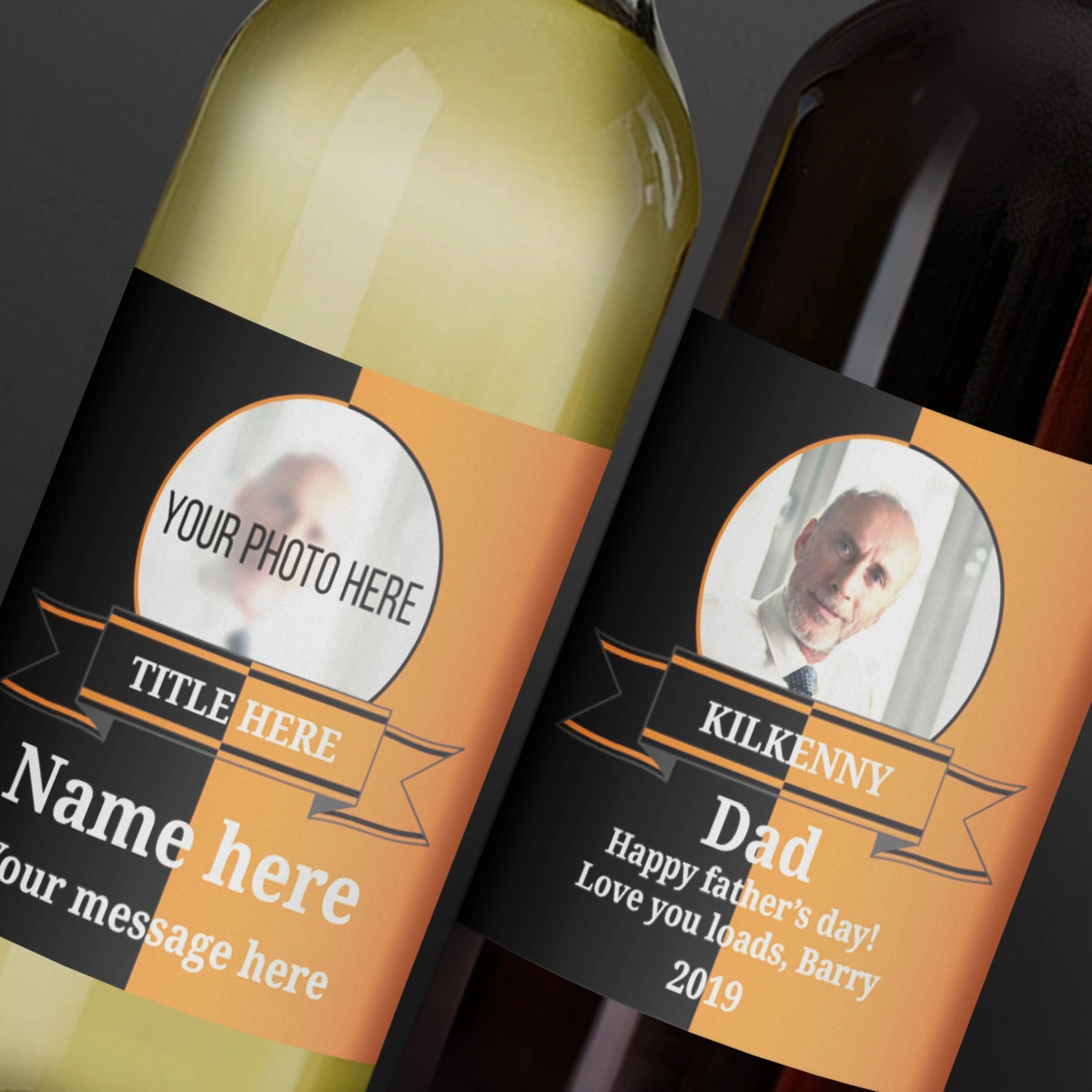 The label is personalised with your recipient's county colours, their home county, a headline (normally their name) and up to 2 greeting lines.
