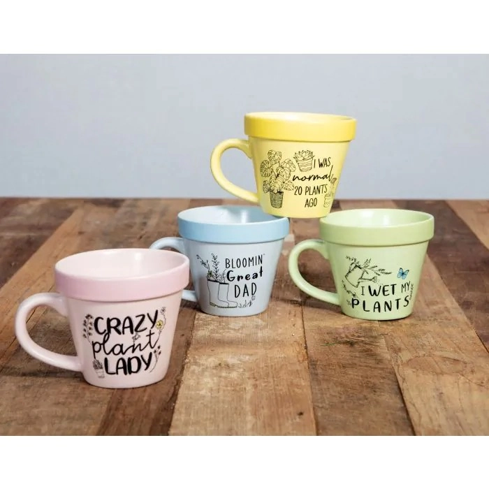 Unique Plant Pot Mug - This pastel pink gardening mug is shaped like a plant pot making it a unique gardening gift for any plant lover!