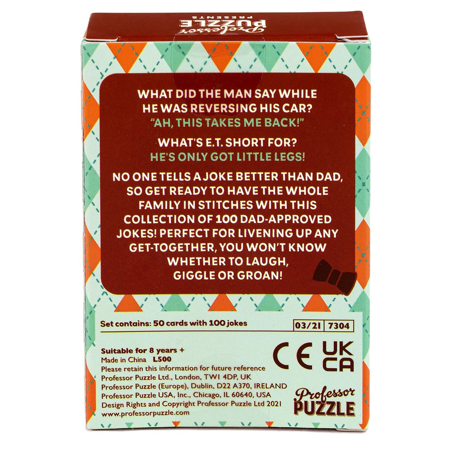 Bring the laughs, groans, and cheeky smiles to any family gathering with this fantastic collection of classic dad jokes! Featuring 100 dad-approved jokes spread across 50 compact cards, this pack is designed to keep the whole family entertained—whether you're around the dinner table, at a party, or simply hanging out.