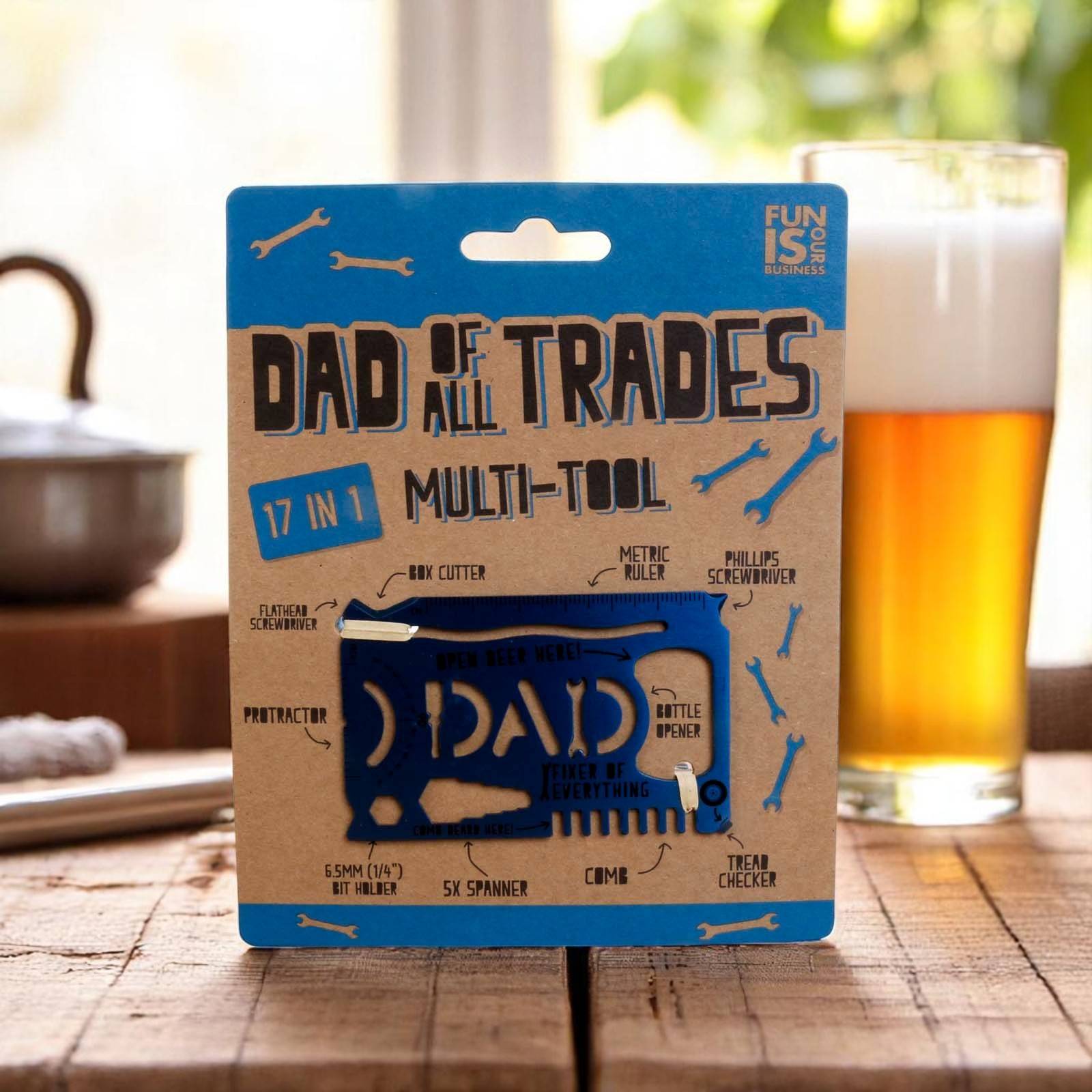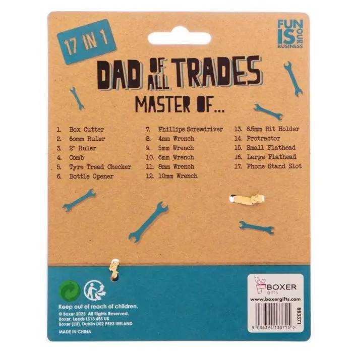 We all know that Dad can do it all. But does he have it all? With our awesome Dad of all Trades Multi-Tool, he soon could! This amazing, functional multi-tool has over 17 uses all packed in to this card-sized gadget, perfect for fitting into any wallet or cardholder, for fixing on the go!