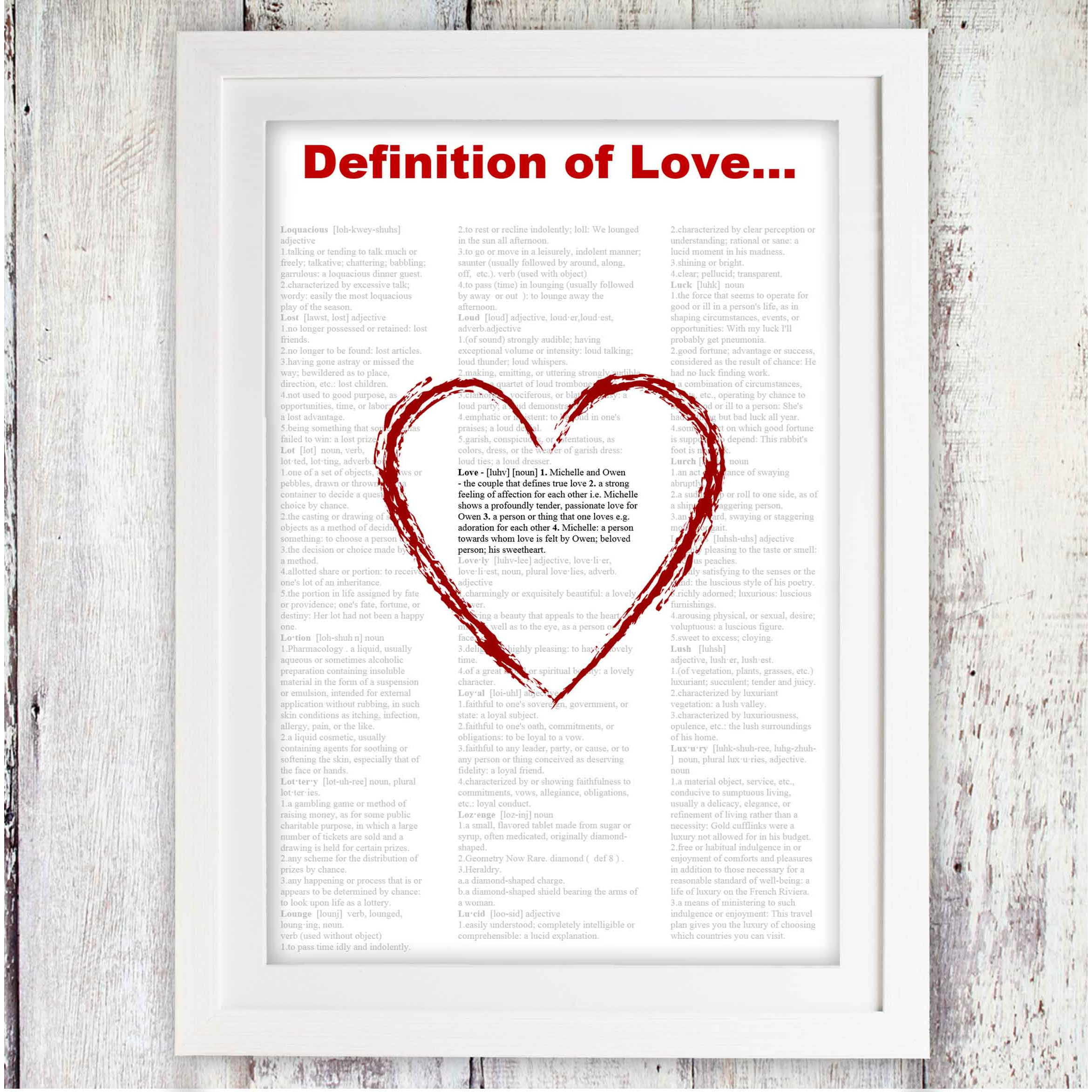 The couple's names are personalised in the definition, up to 15 characters each.