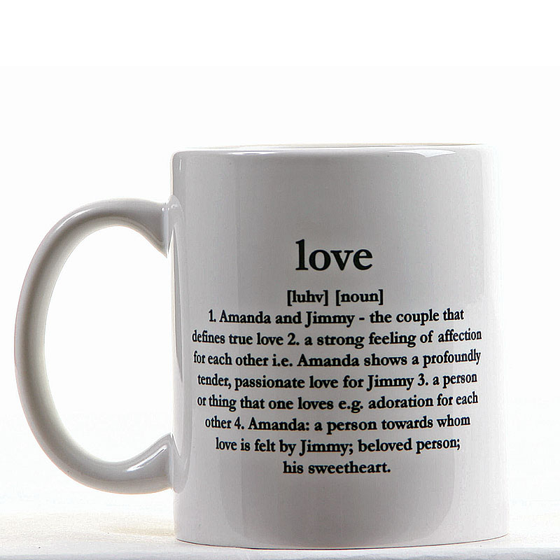 The couple's names are printed on the high quality 11oz mug with vibrant results. Size: 9.5 cm high x 8 cm diameter (11oz), each mug is also dishwasher and microwave safe.