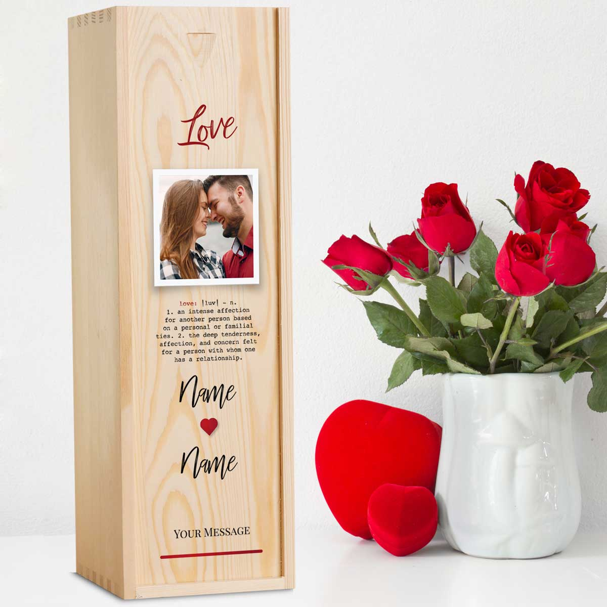 This personalised wine box with a bottle of wine makes the perfect gift for any romantic occasion.