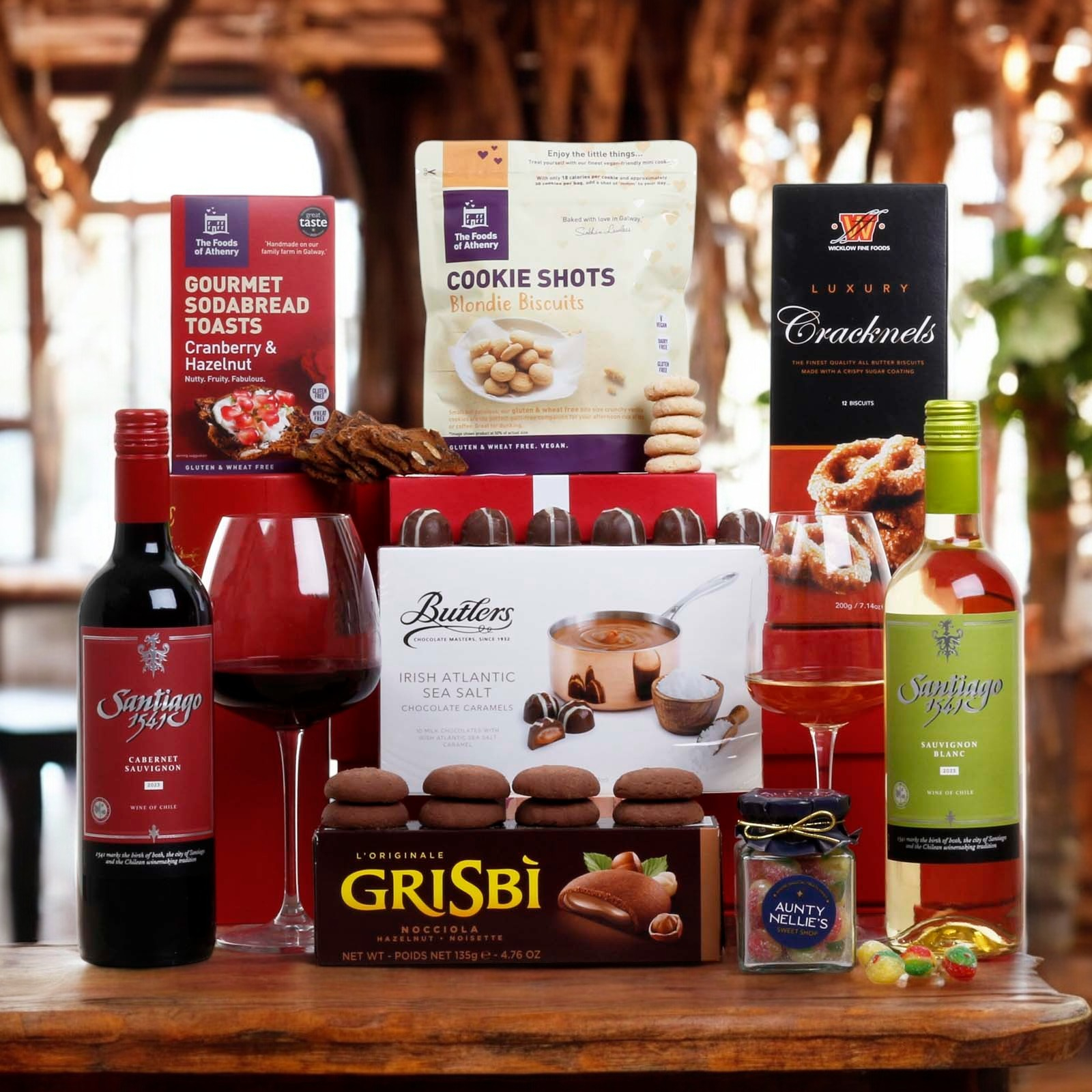 Discover the art of gourmet gifting with the Deirdre Hamper, a carefully curated collection of premium treats and elegant wines, perfect for celebrating life’s special moments or simply indulging in a luxurious escape. Beautifully presented and thoughtfully selected, the Deirdre Hamper is a gift of warmth, richness, and joy. Whether you're saying thank you, congratulations, or just “thinking of you,” this hamper delivers delight in every bite and sip.