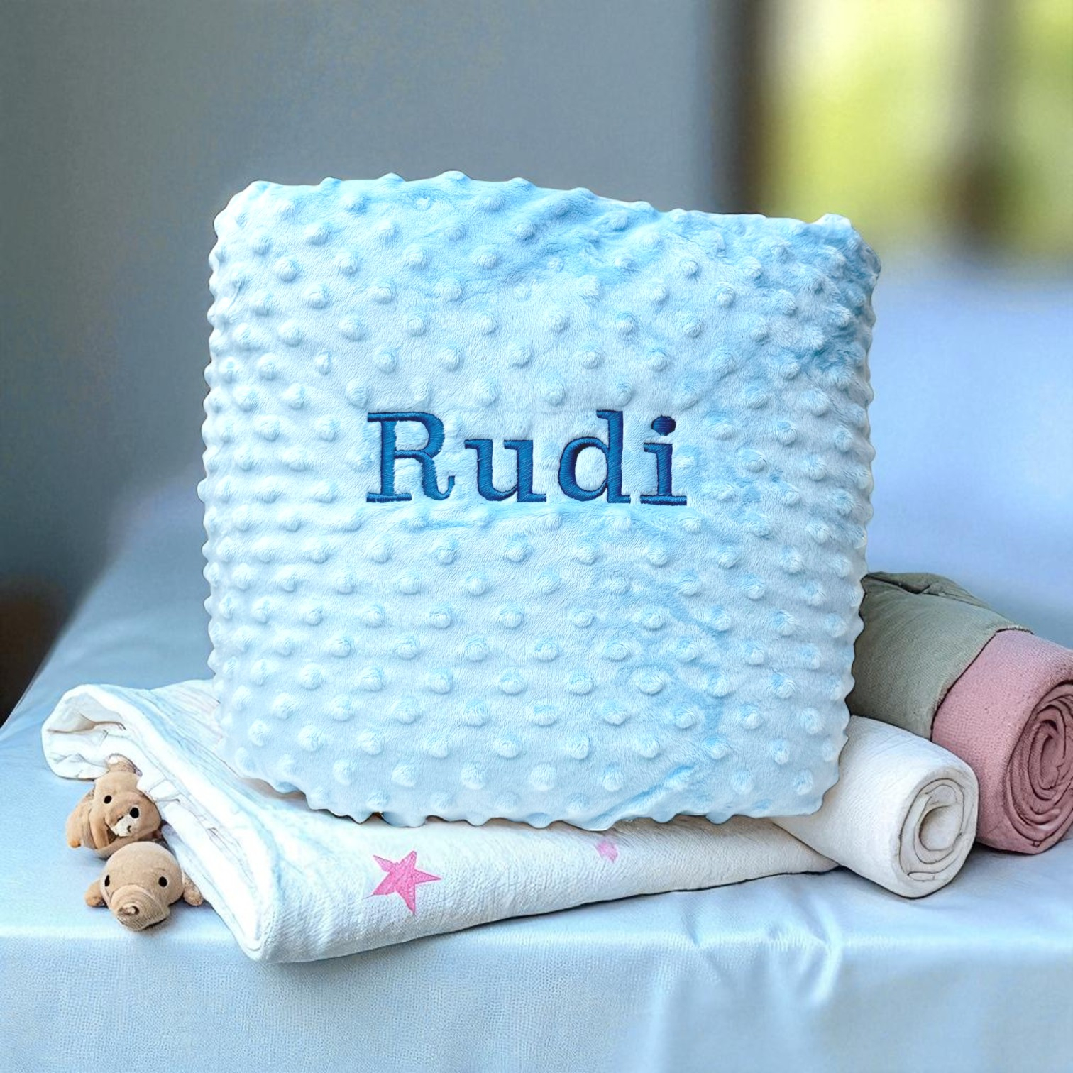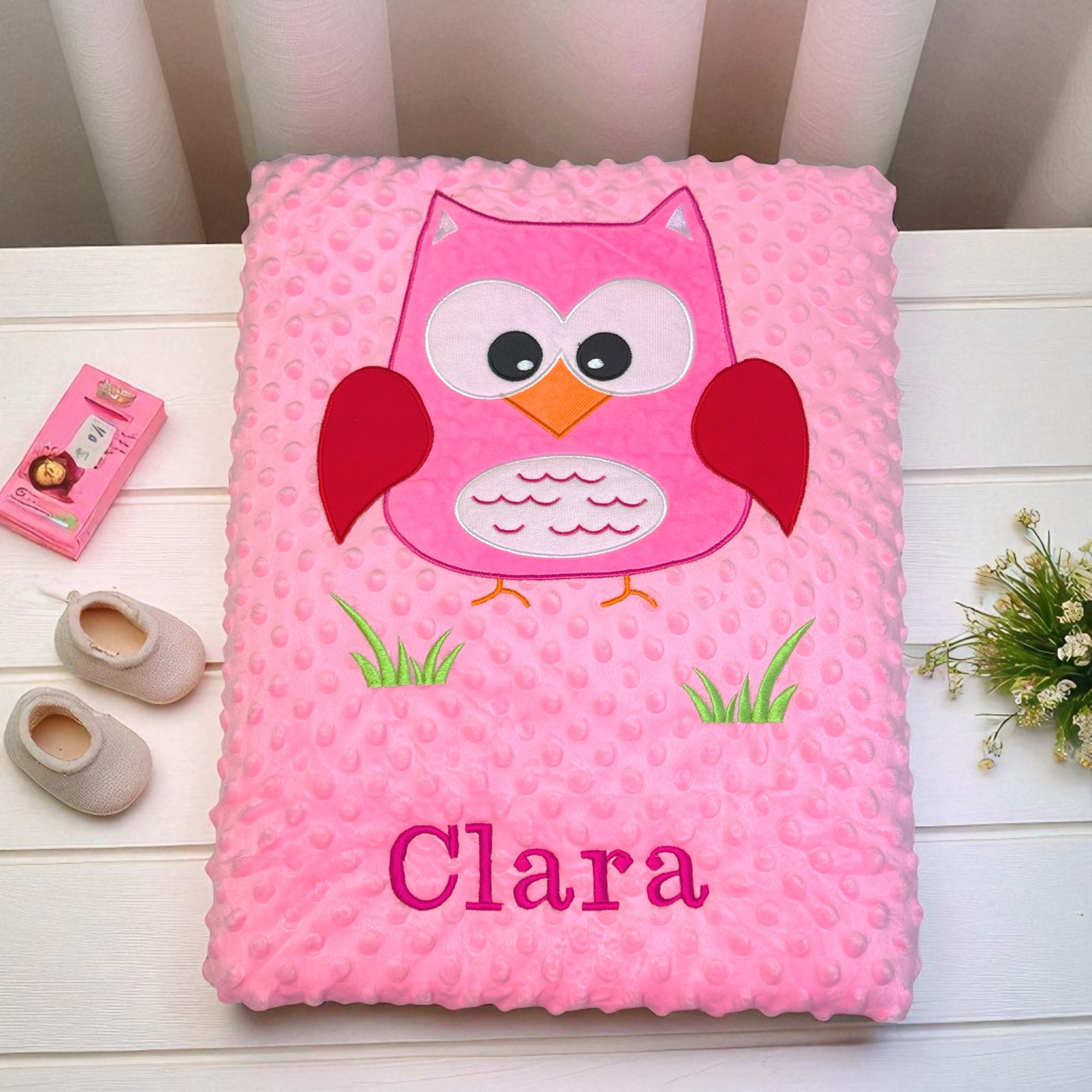 Baby cot blanket made in twin layer soft dimple cotton velour fabric.