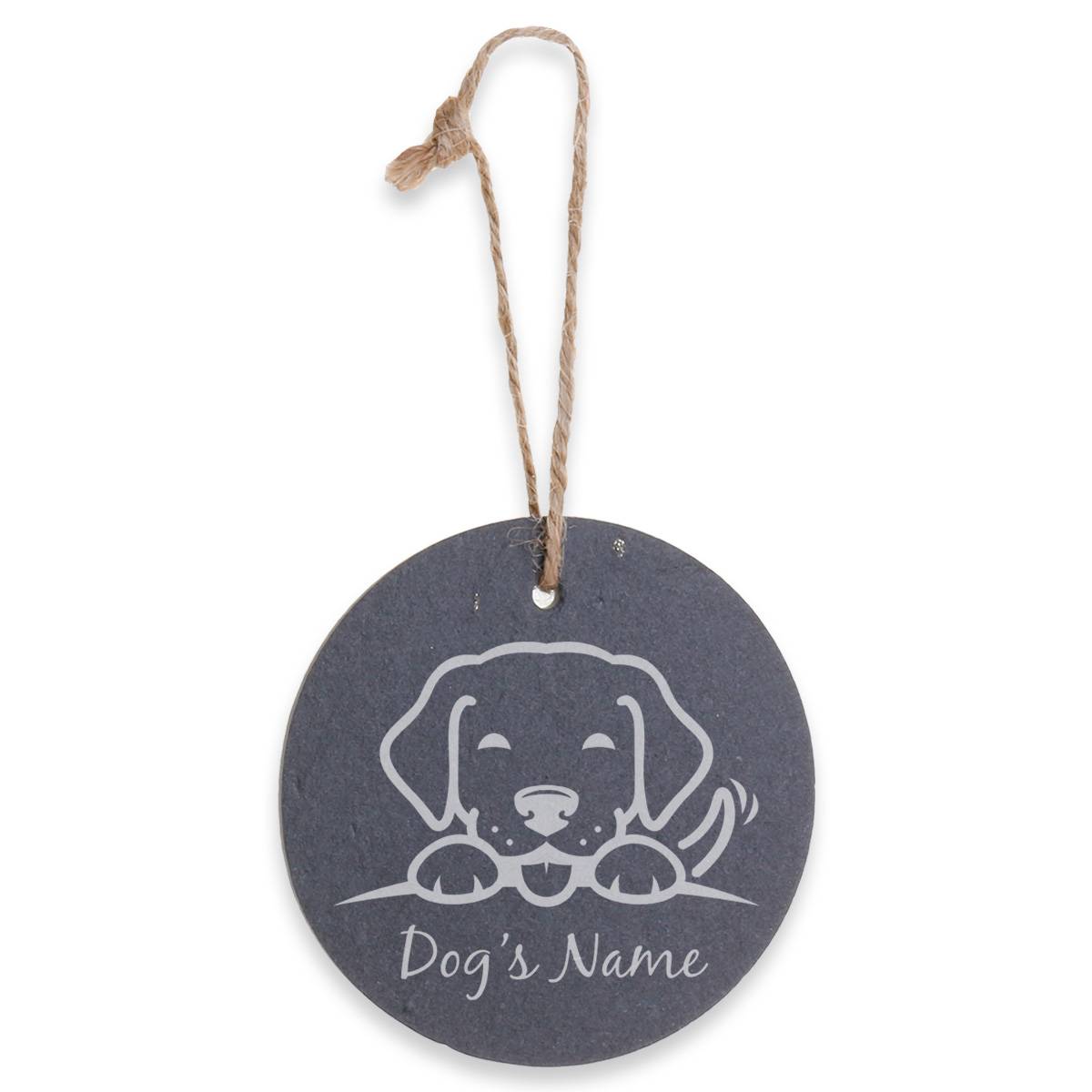 Dog's Name - Personalised Round Slate Hanging Decoration