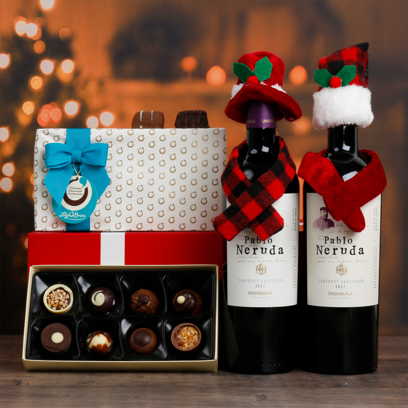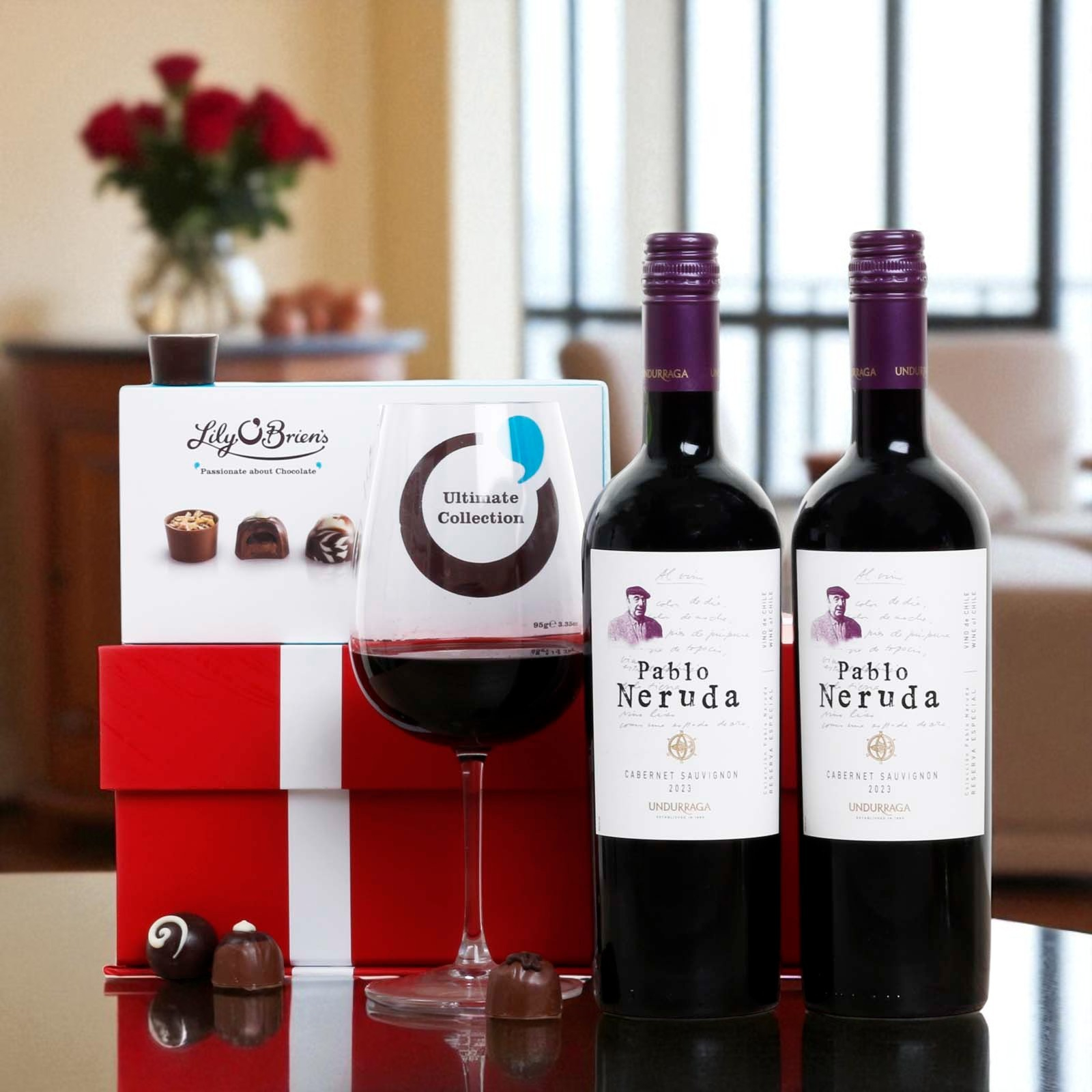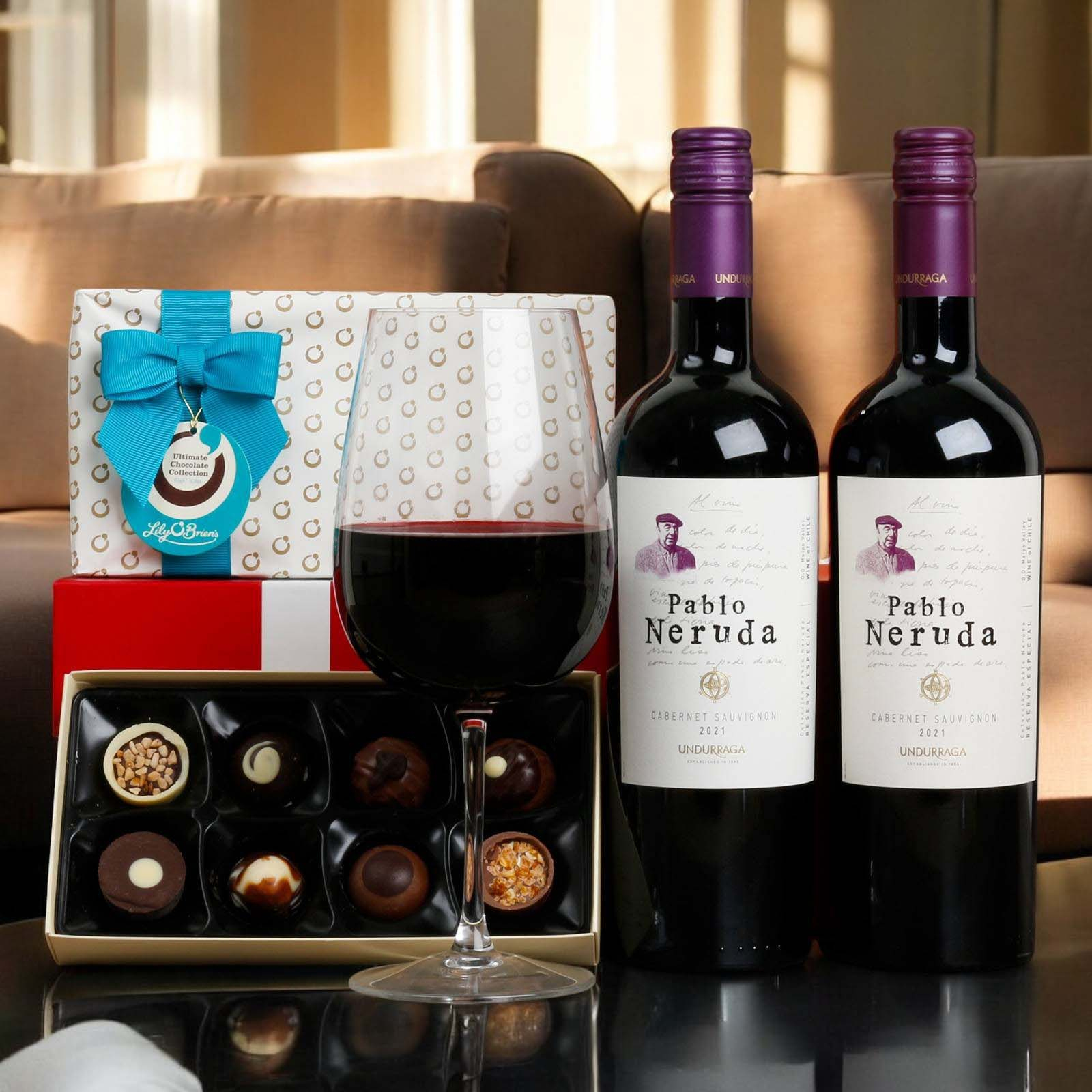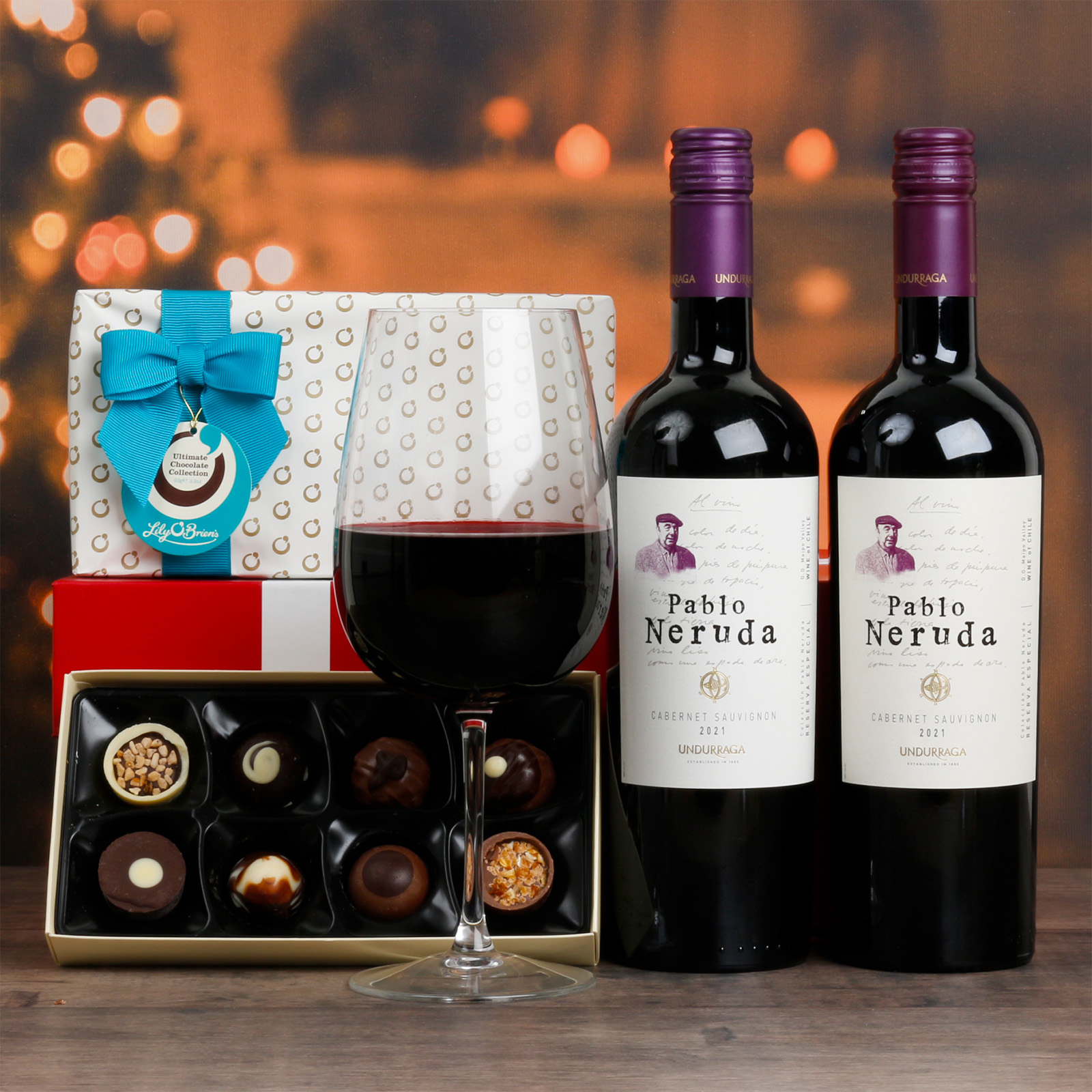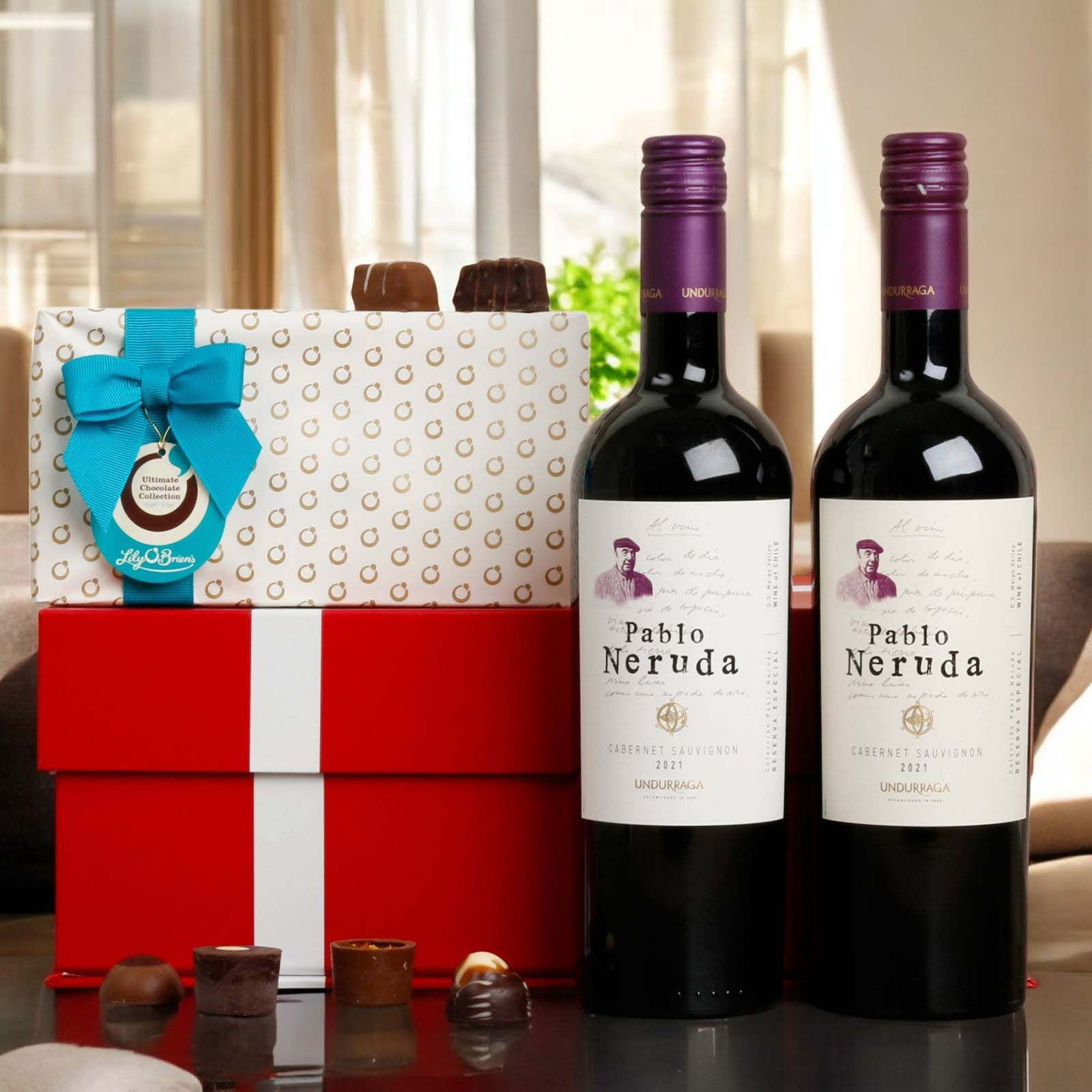 Two amazing wines coupled with an elegant box of Lily O'Briens gift-wrapped chocolates.