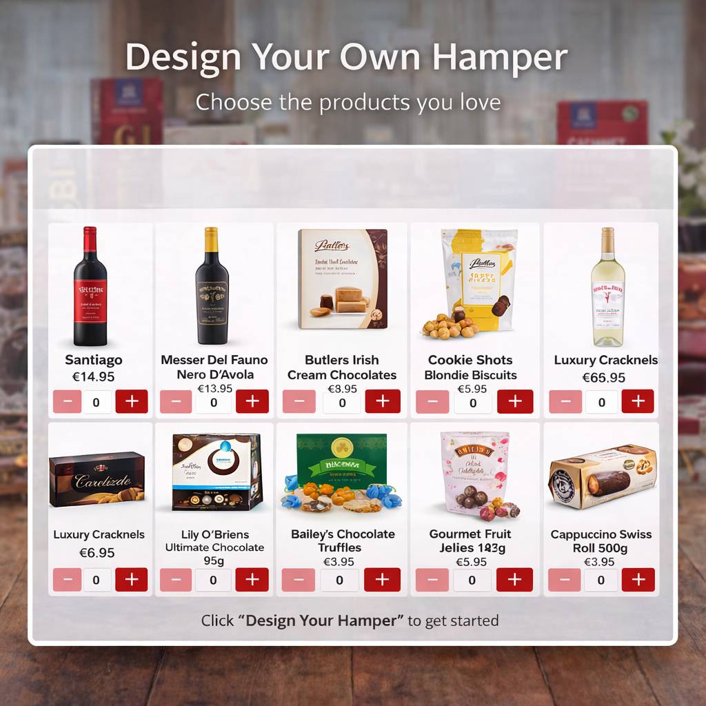 With Design Your Own Hamper, you choose exactly what goes inside. Start with an empty red gift box and hand-pick the items you want to include - from fine wines and chocolates to cakes, sweets and gourmet treats.